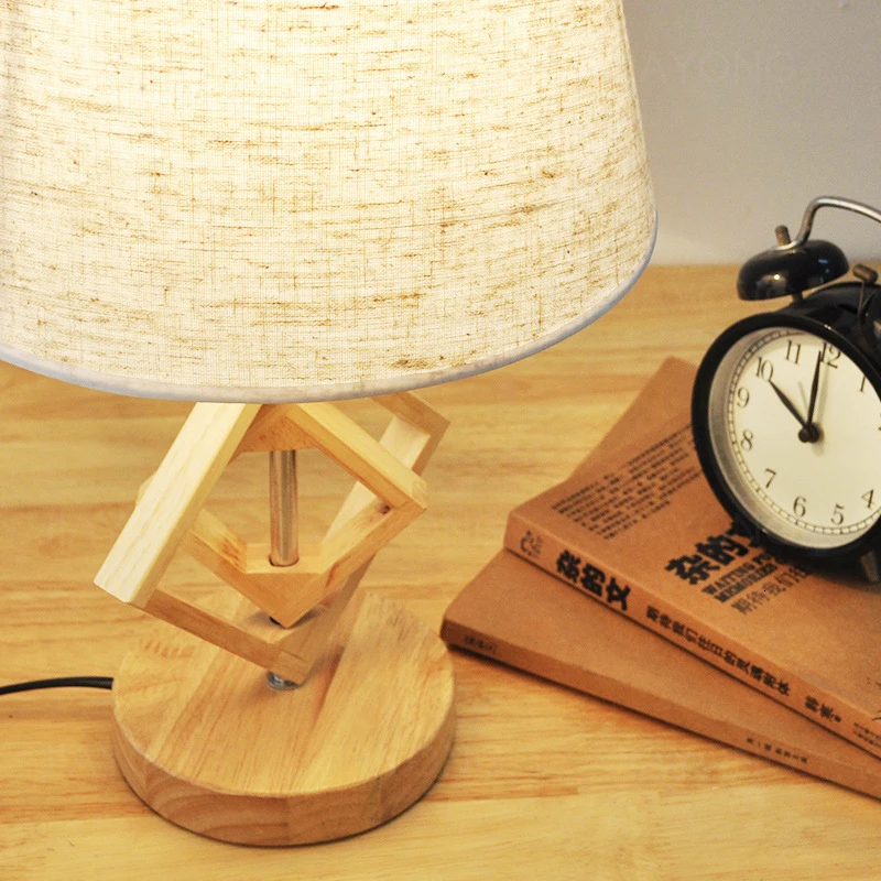 Креативная Настольная лампа с деревянным основанием из ткани, настольная лампа для спальни