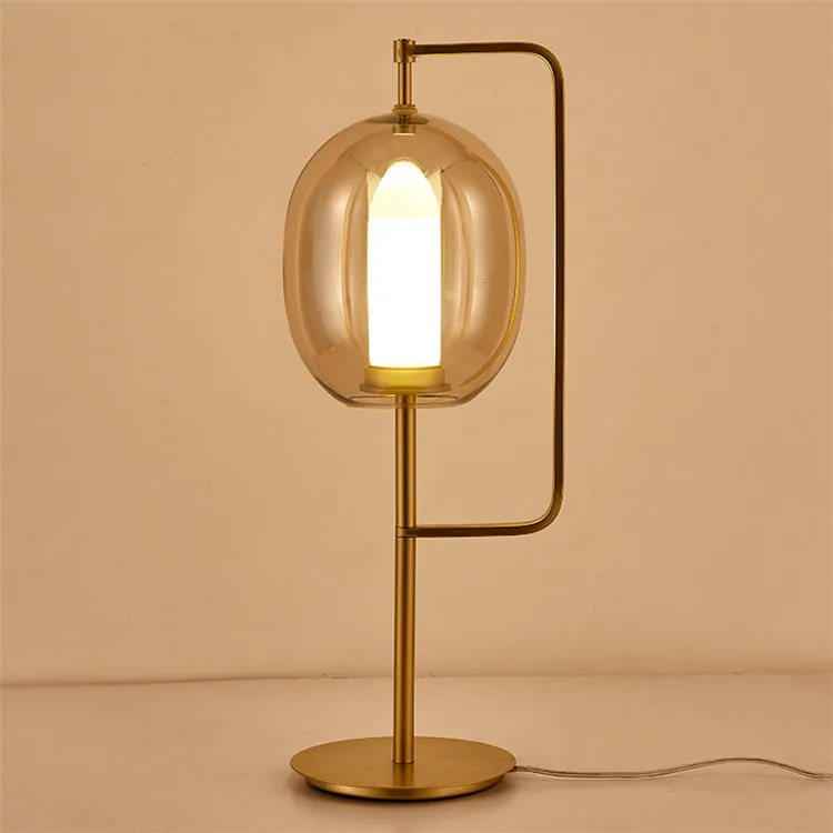 Modern Decorative Luxury Round Glass Ball Table Lamp With Golden Base For Hotel BedsideProduct Description