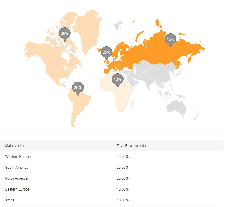Европа, Америка, Юго-Восточная Азия и Ближний Восток являются нашими основными коммерческими зонами.