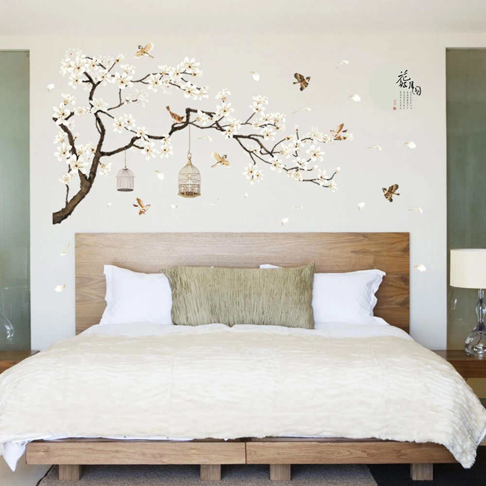 Полнолуние Цветок Наклейка Настенная с птицей дома гостиной Съемная наклейка DIY Декор