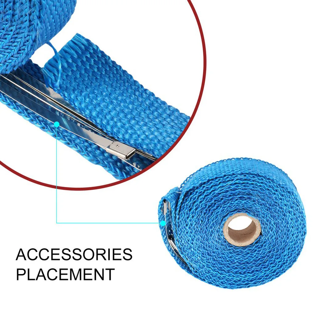 НОВЫЙ 2,5 см 5 м рулон стекловолокна выхлопной трубы Тепловая оберточная лента + 4 галстука Комплект Горячий