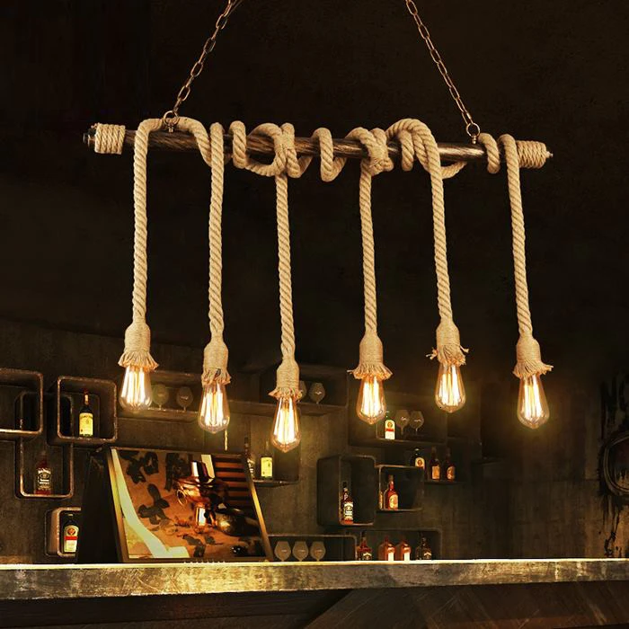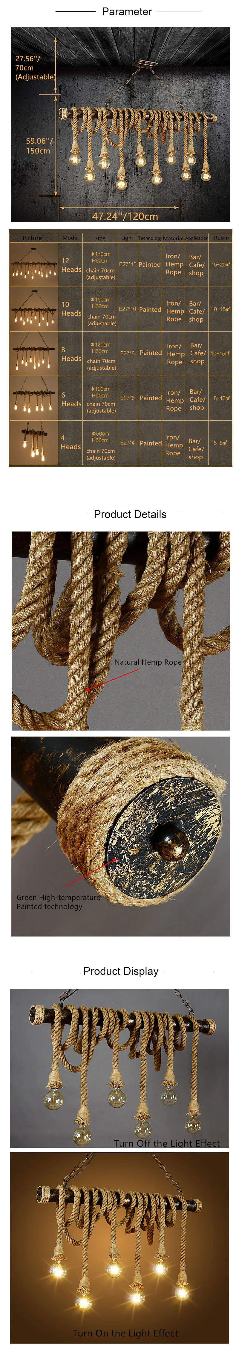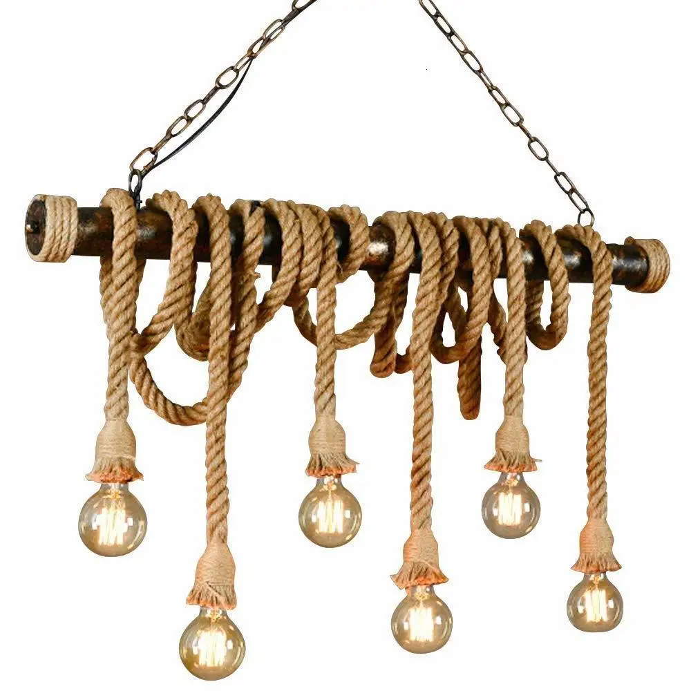 Американский промышленный пеньковая веревка светильник лампа украшения потолка Винтаж светильник люстра подвесной светильник