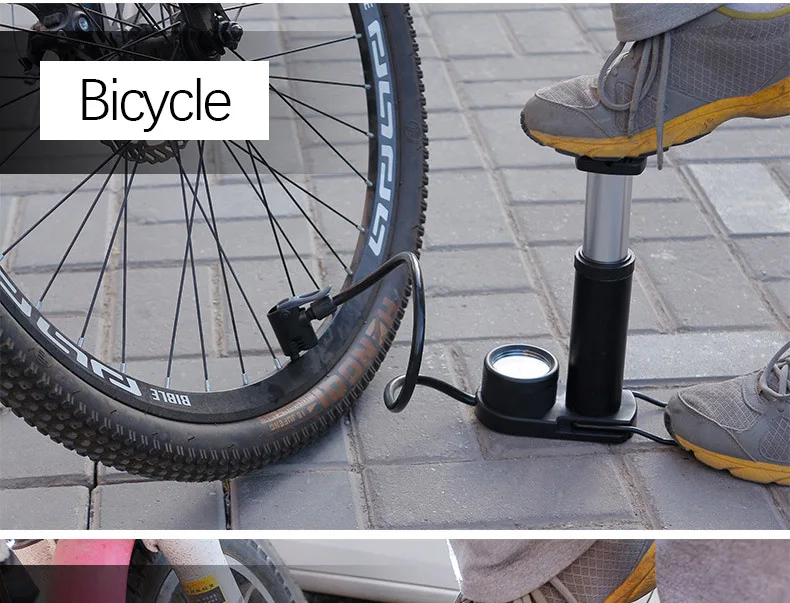 Nme: Педальный велосипедный насос высокого давления Материал: Алюминий из алюминиевого сплава Цвет: черный Максимальное Атмосферное давление: 160psi Применимое воздушное сопло: сопло Франции, сопло США Длина: Approx.17cm