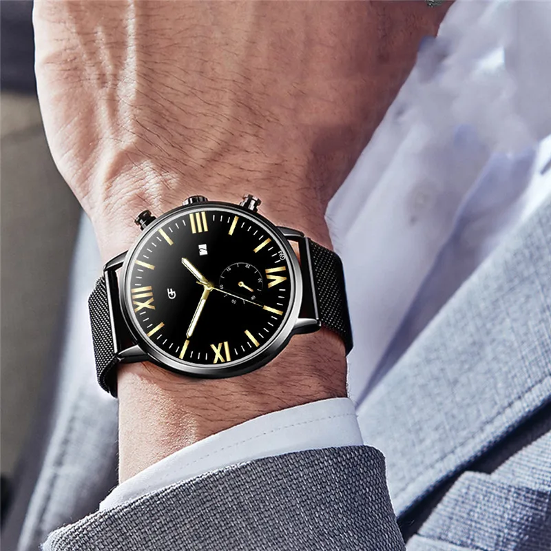 Особенности: -Модный и повседневный -Отображает дату и время Обеспечивает большую прочность сплава Технические характеристики: -Чехол Материал: сплав -Чехол диаметр: 42 мм -Чехол Толщина: 10 мм -Материал ремешка: сплав -Длина ремешка: 260 мм -Ширина ремешка: 20 мм Посылка в комплект входит: 1 x часы Для мужчин