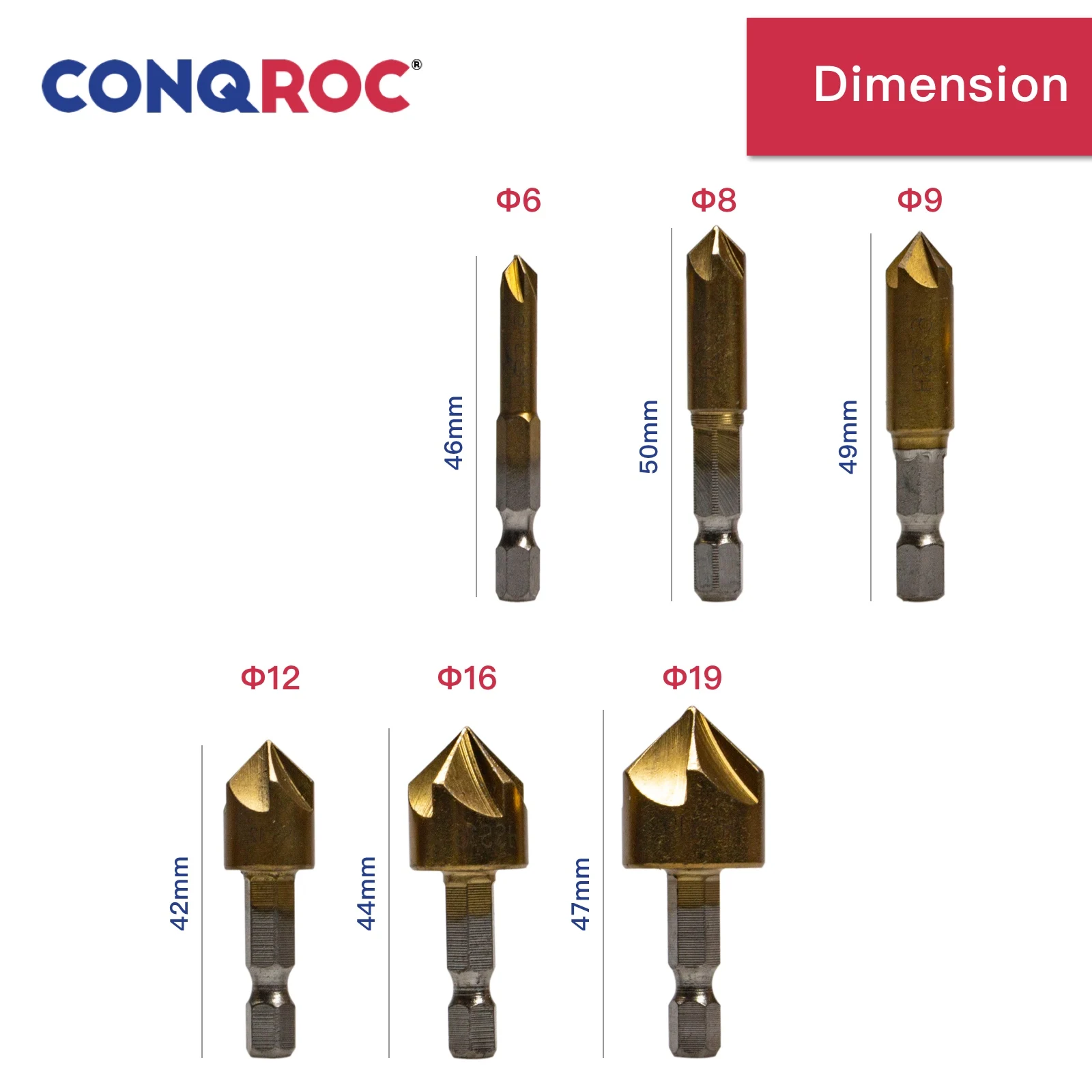 6 шт. 90 градусов шестигранный хвостовик титановое покрытие Зенковка сверло 5 Флейта 6-19 мм Деревообработка фаска счетчик Раковина Debur