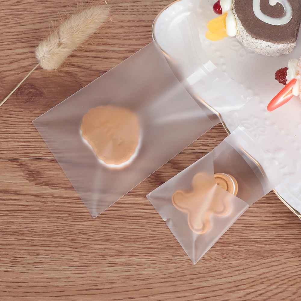 100 шт пластиковый прозрачный матовый конфеты Подарочный мешок для печенья с DIY самостоятельно клейкий мешочек Свадьба День рождения конфеты упаковочный мешочек кисет подарочная коробка