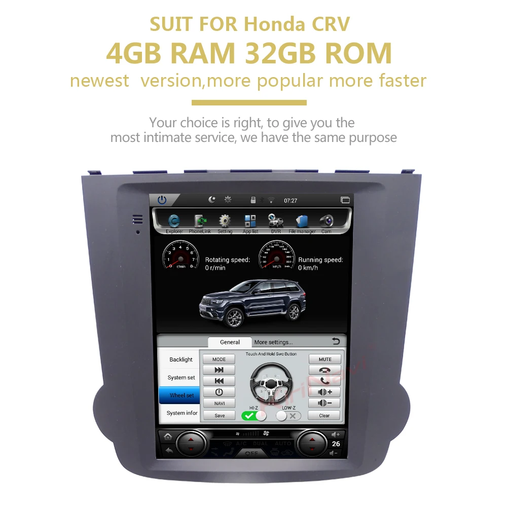 Вертикальный экран KiriNavi Tesla Style 10,4''Android 9,0 Автомобильный мультимедийный Dvd НАВИГАЦИЯ для HondaCRVРадио Automotivo2009-2012