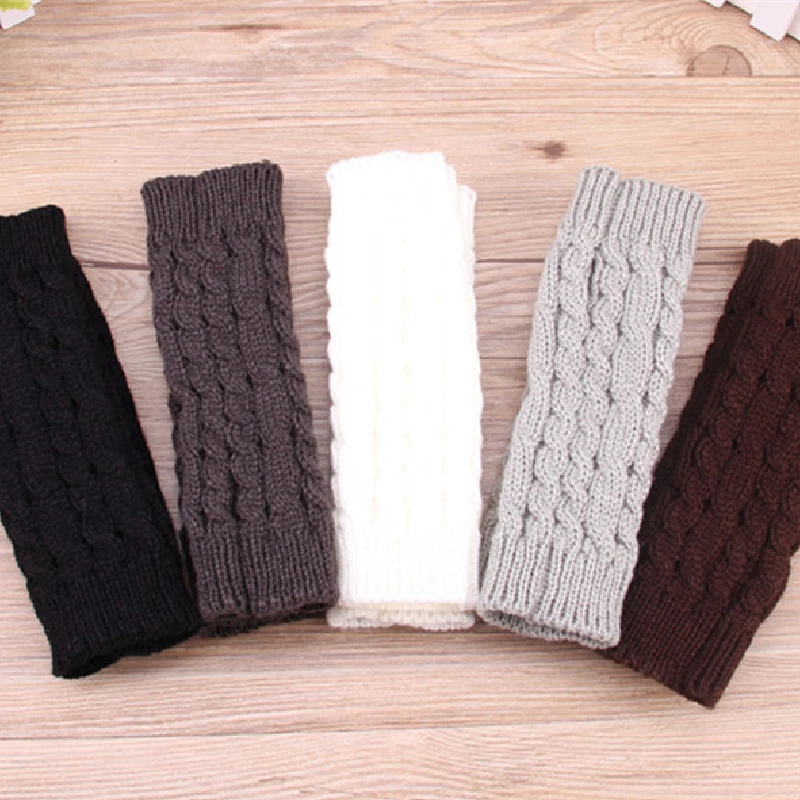 Женские и мужские вязаные перчатки без пальцев с коротким рукавом, теплые варежки
