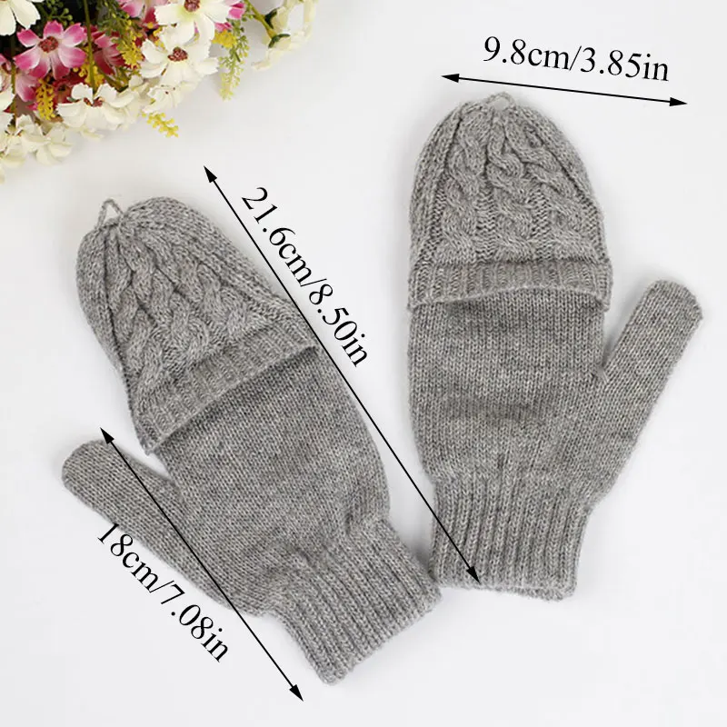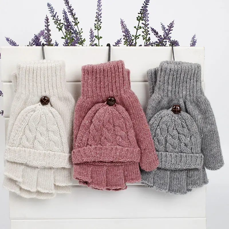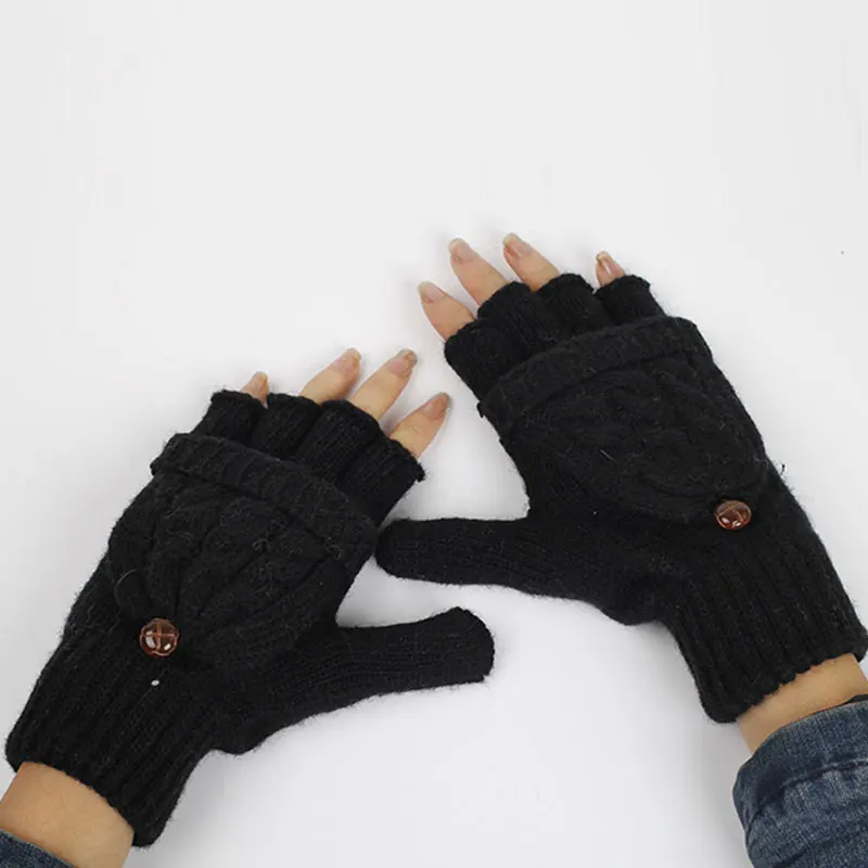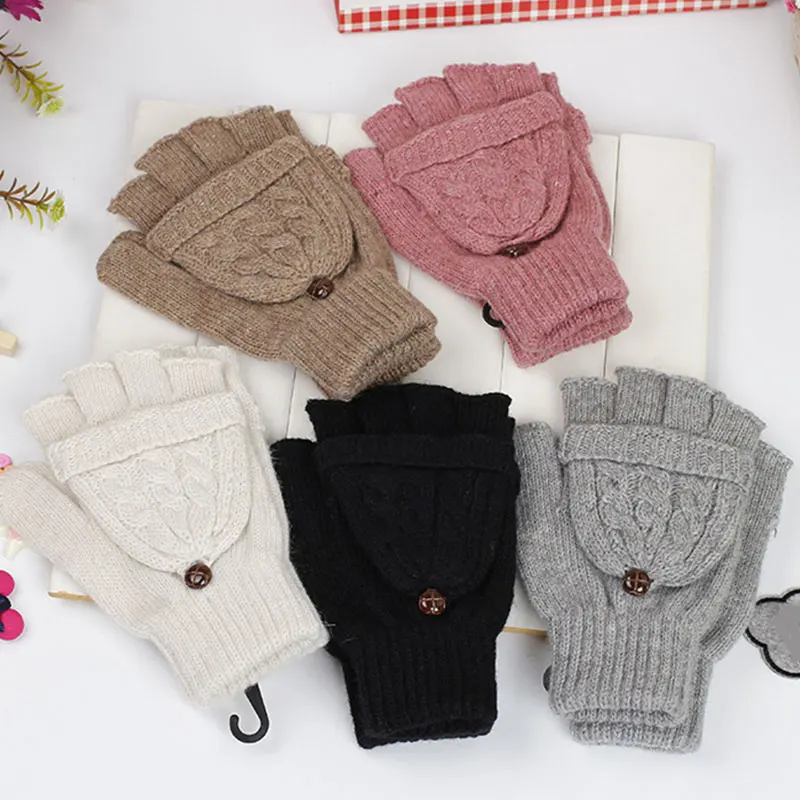Женские однотонные зимние вязаные перчатки с полупальцами, теплые варежки для рук