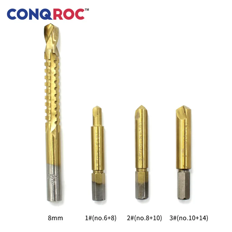 HSS4241 материал с титановым покрытием. Прочный и отличное качество изготовления. Резьбовая головка крепче, удобнее в использовании. Подходит для электрического инструмента с соединением или зажимом, удаляющим винты или сломанные гайки в твердой древесине.