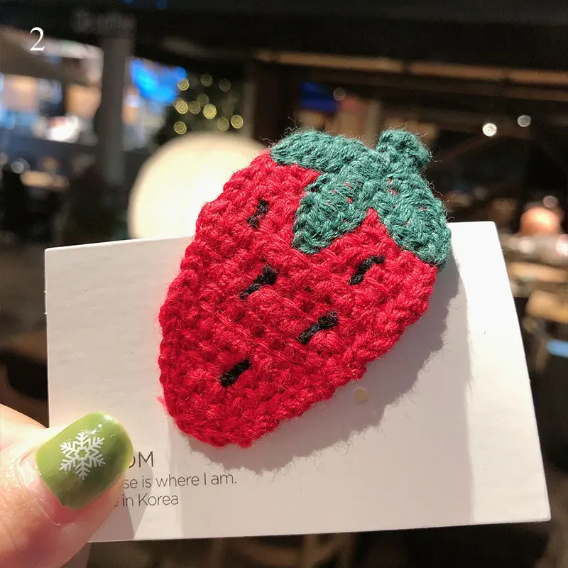 Зимняя вязаная заколка для волос для девочек ручной работы с фруктами