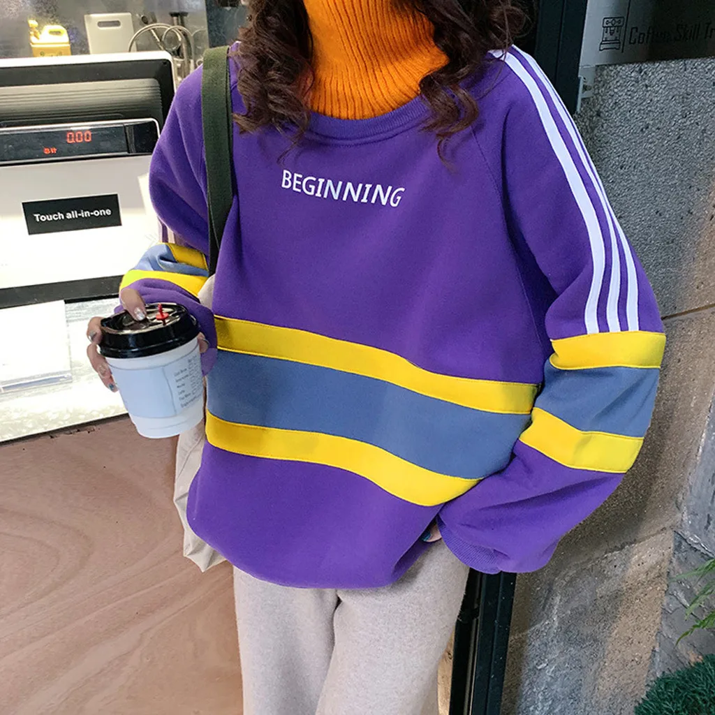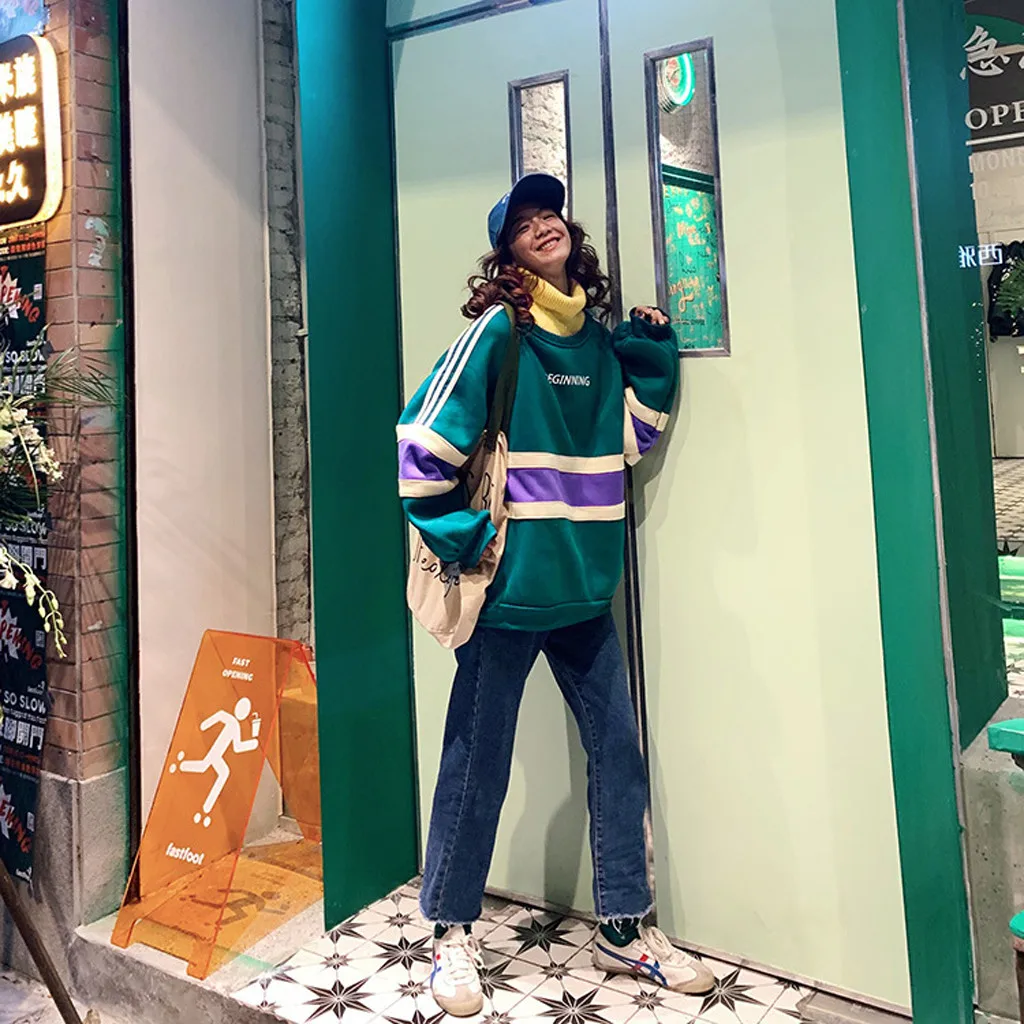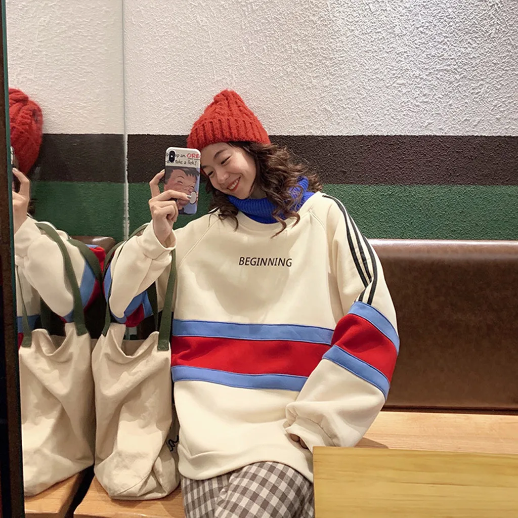 Fashion Women High collar Splicing Thickening Casual Long Sleeve Top Sweatshirt