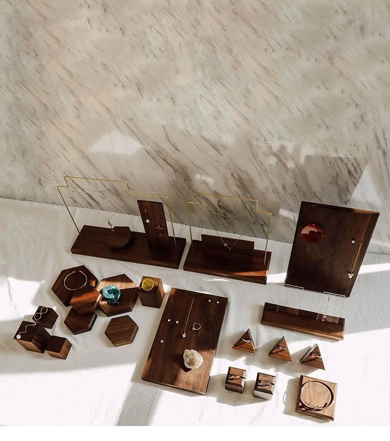 Simple Black Walnut Jewelry Rack Necklace Display Rack Ear Nail Storage Pallet Earring Display Stand Wood Bracelet Ring Tray