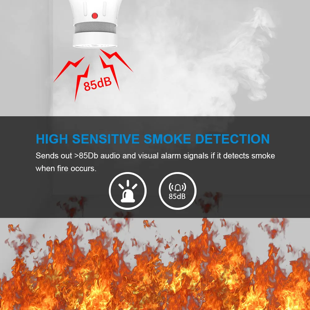 85dB дымовой пожарной сигнализации, мини-размер, детектор дыма, 5 / 10 лет батареи беспроводной датчик