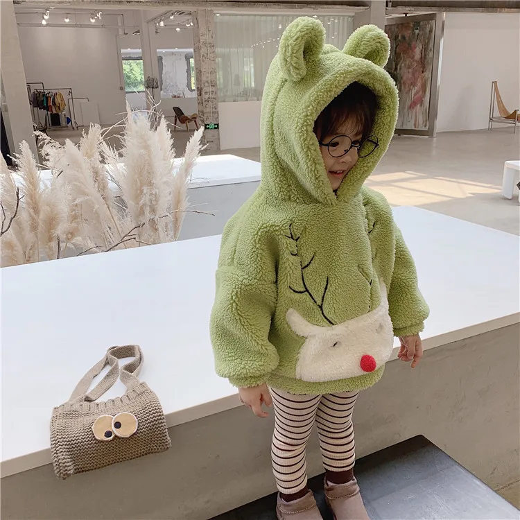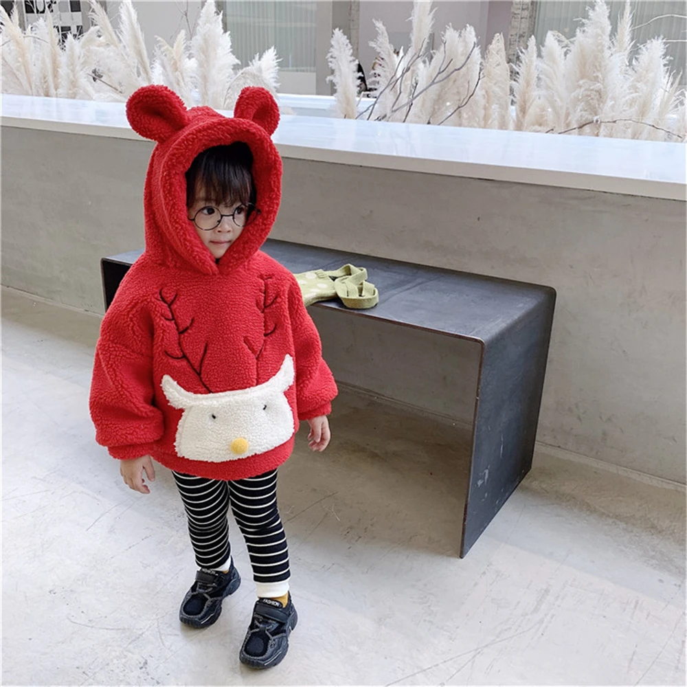 Девочки, мальчики, дети, зима, Рождество, свитер, ветер, мультфильм, милый, лось, теплый, плюс бархат, ягненок