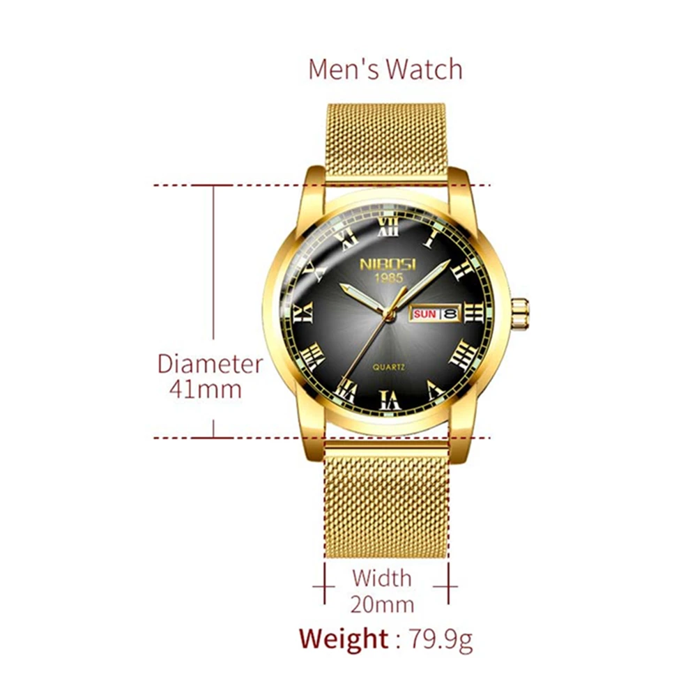 Часы наручные NIBOSI Мужские кварцевые, брендовые Роскошные водонепроницаемые спортивные со стальным ремешком, с датой