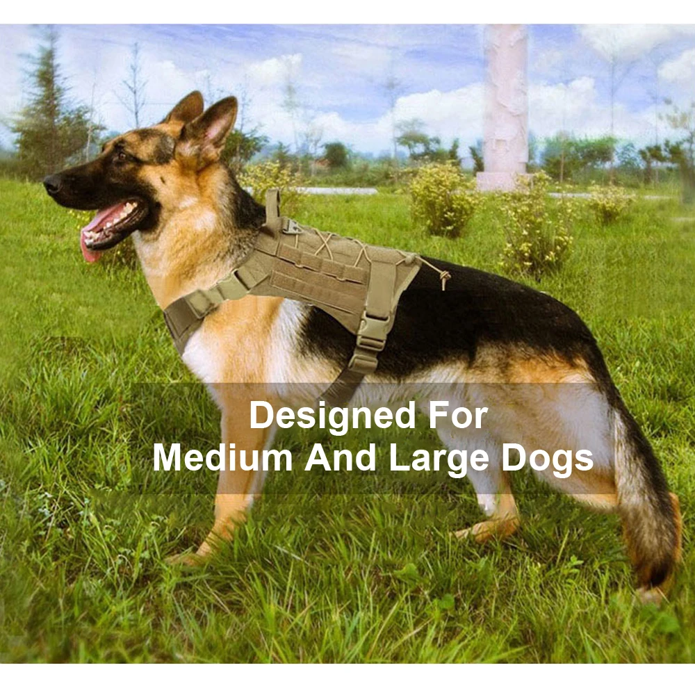 1.Made of 1000D nylon, this dog harness is lightweight, smooth, corrosion resistant, and durable. 2.No rub, Adjustable chest/neck strap sits above the dog's breast bone,Belly strap sitting far enough from the arm pits when dog walking / sits ,Eliminating the problem of causing pain to arm pit. 3.The quick release clasp makes it easy to put on and take off. 4.As the shoulder strap is adjustable, it can fit your pet well without being loose easily. 5.Each side comes with the belt for Molle system, so you can organize the detachable pouches according to your need. 6.With this water-resistant dog harness on, your girl/boy can run freely in the thin rain. 7.You can get control of your dog when walking ,and lift your dog when getting in/out of the car.