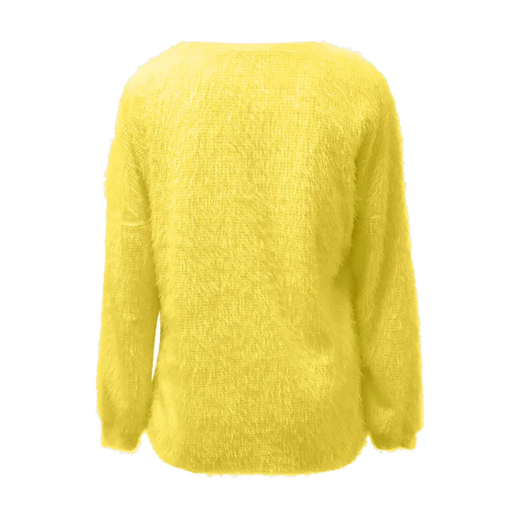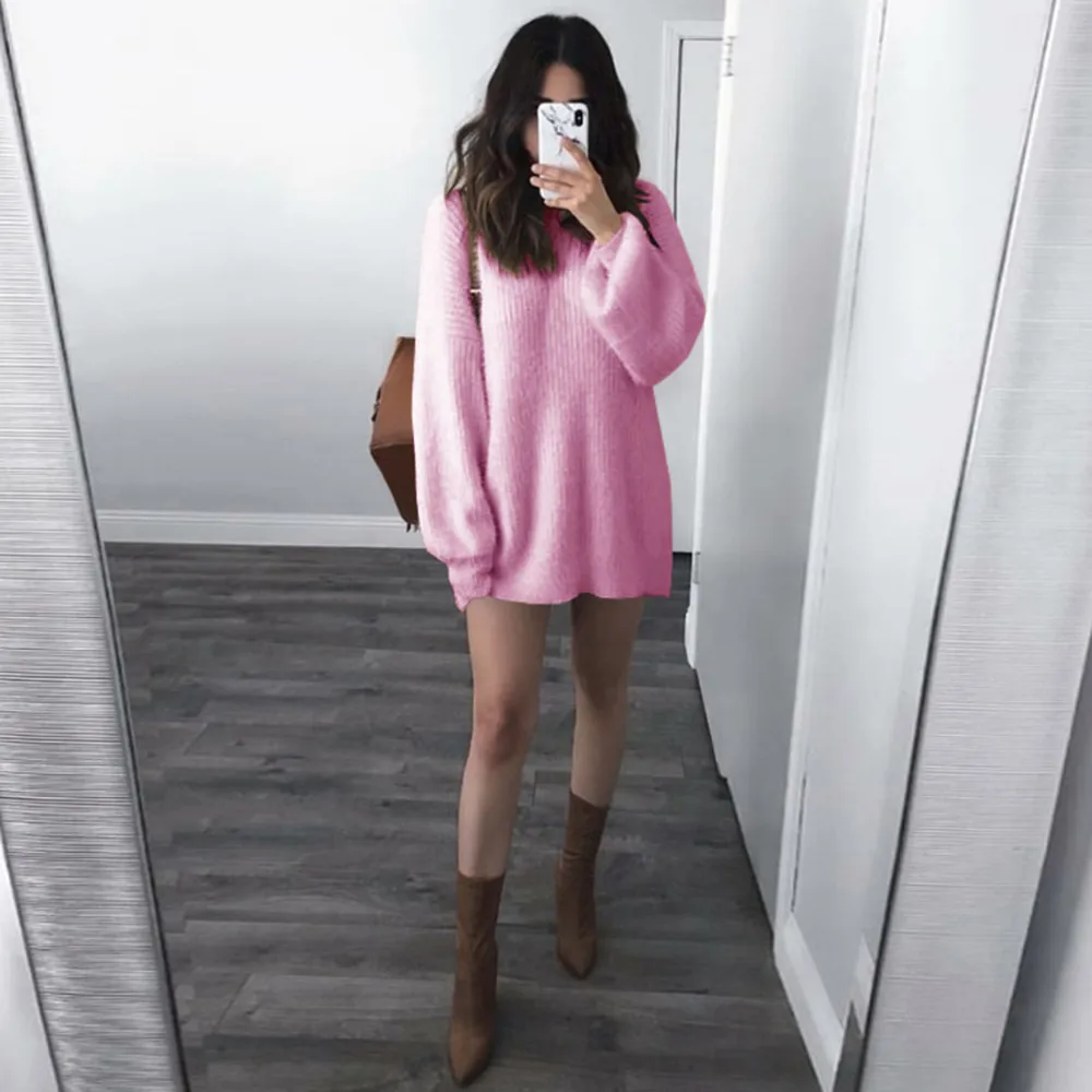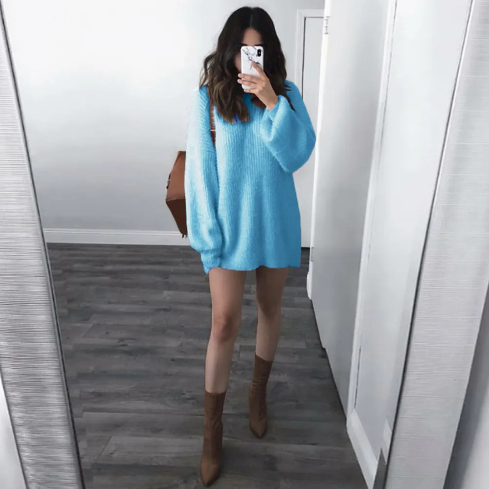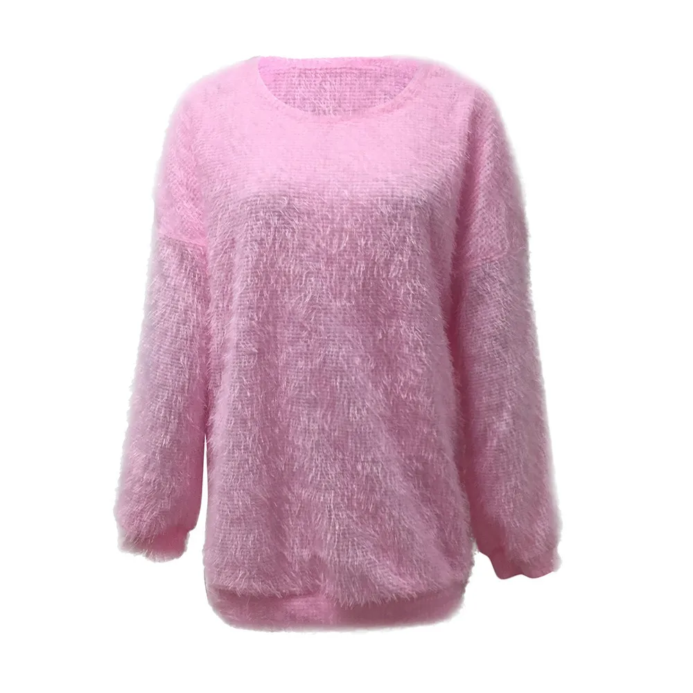 Модная женская однотонная Свободная трикотажная теплая блузка с длинными рукавами и круглым вырезом Особенности: