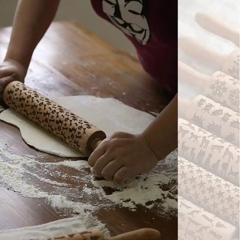 Рождество костяные следы выгравированы тиснение Скалка Для тесто для печенья выгравированный ролик для выпечки
