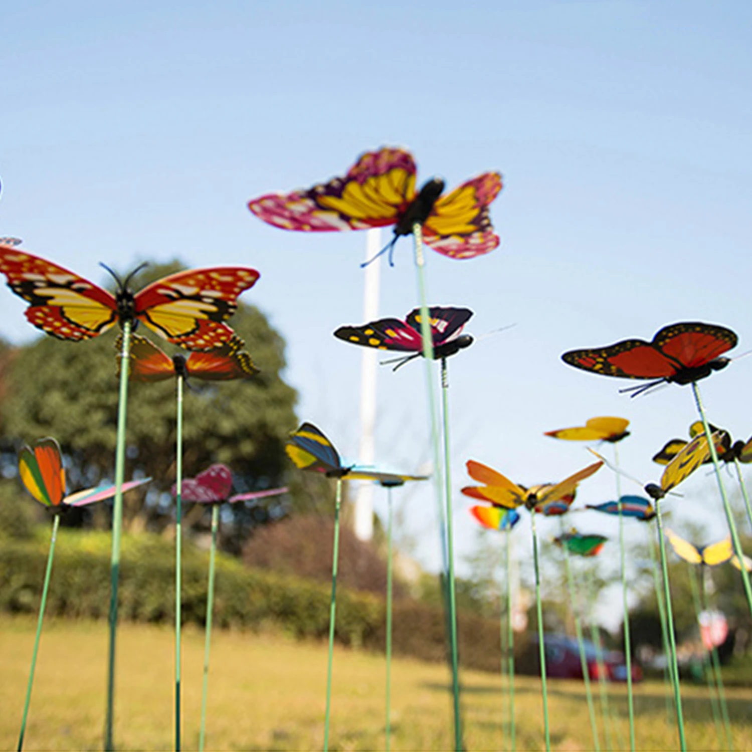 [Яркие украшения]Колышки бабочек прикреплены к небольшой пружине в верхней части палки, чтобы они могли свободно и верно двигаться к жизни на ветру, делая ваши растения выглядят гораздо лучше.