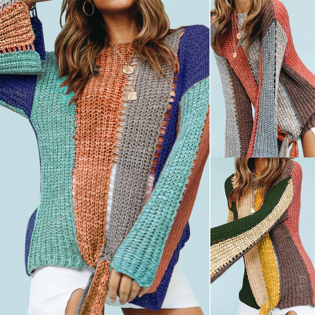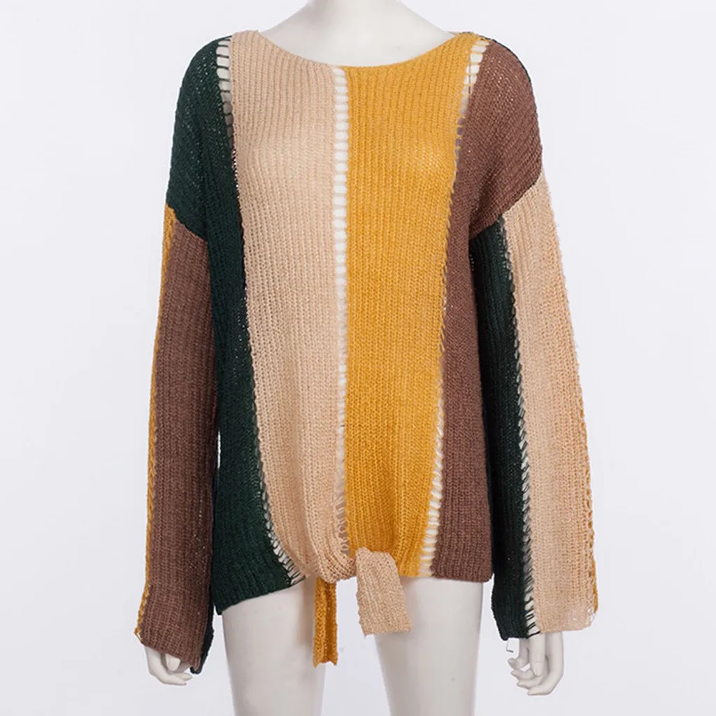 Женский вязаный пуловер с длинным рукавом размера плюс
