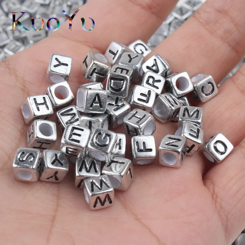 100 шт. 6 мм Смешанные серые бусины с буквенным принтом квадратные акриловые бусины с алфавитом DIY для изготовления ювелирных украшений для очаровательных браслетов, ожерелий, аксессуаровКоличество: 100 шт.