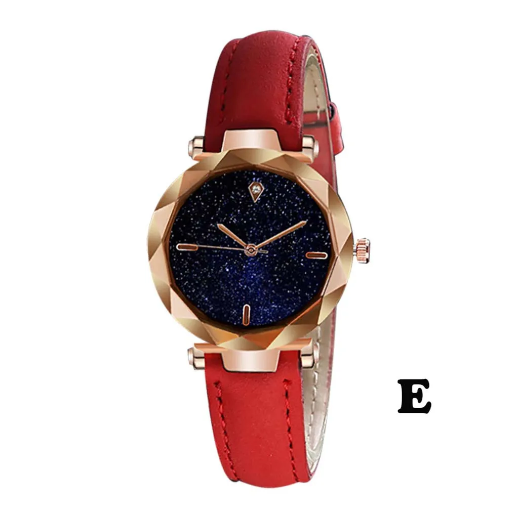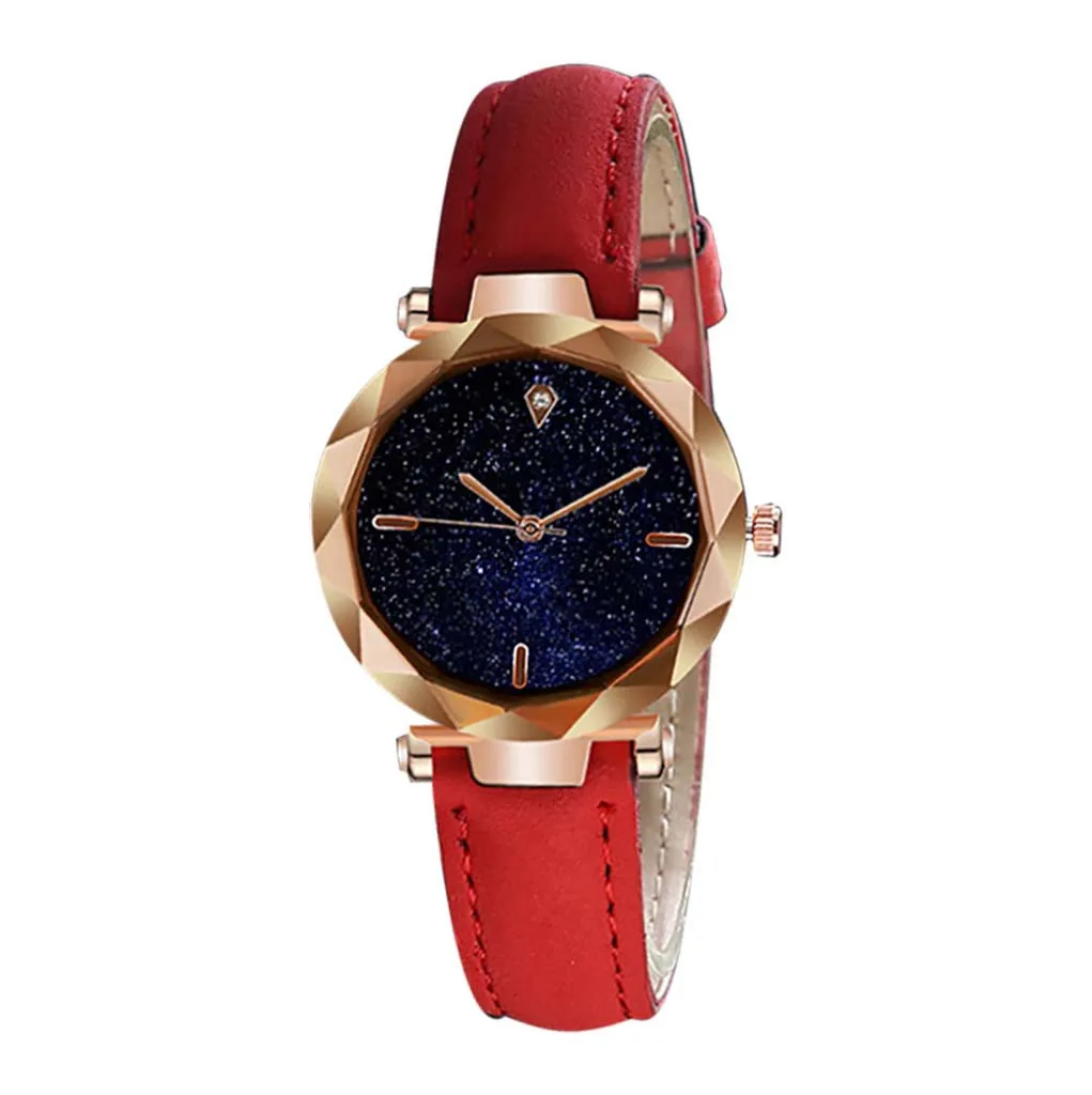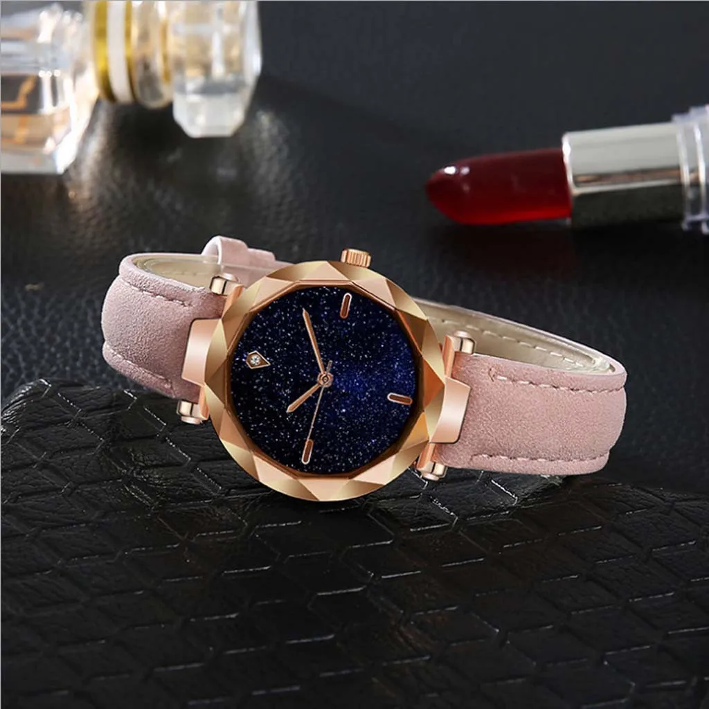 Прекрасный подарок для Друзья и семья Подходит для любого Для особых случаев Идеальный подарок для Мама, жена или друзья. Посещаемость деловых мероприятий Более уверенный и привлекательный Поверхность Звездное небо приносит больше мира Звездный циферблат с Золотой ремешок делает вас еще более сияющими в толпе Модные тренды подчеркивают личный ШармОсобенности: