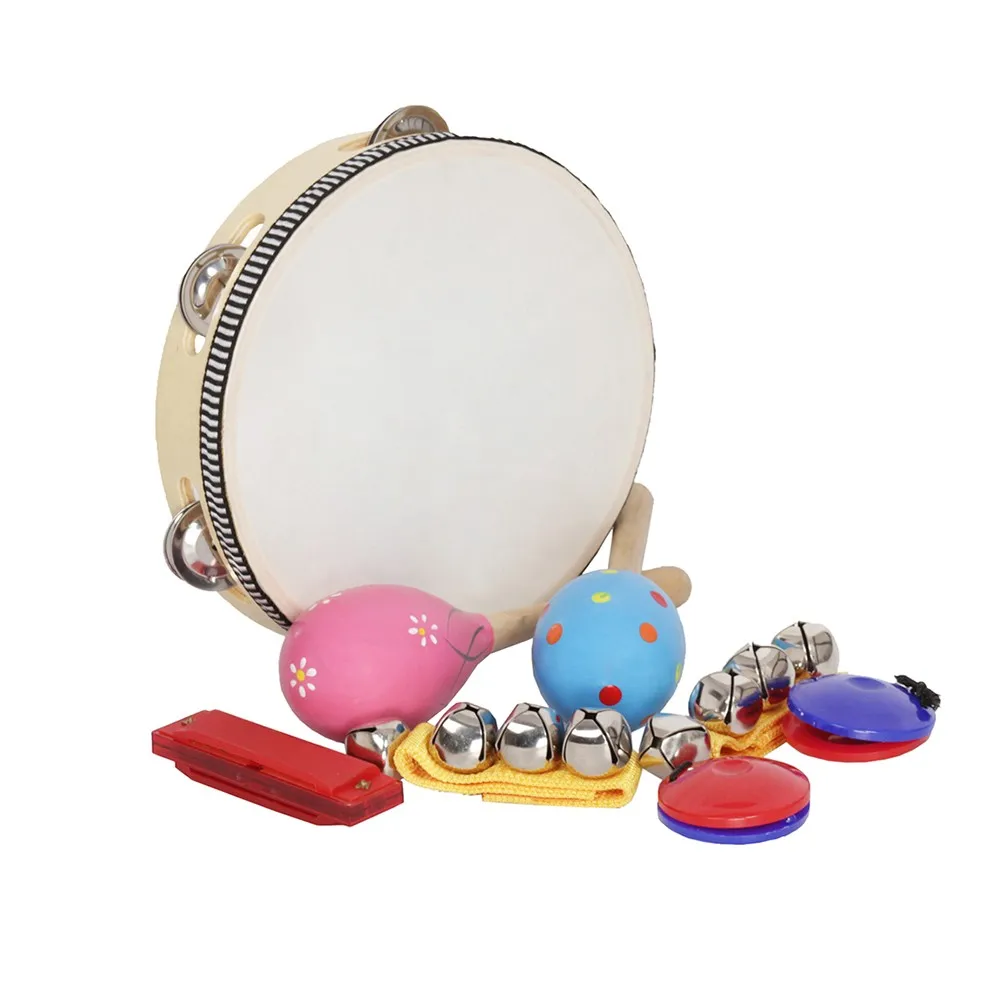 Features: Musical toys set for children, including tambourine(1), Maracas(2), Castanets(2), handbells(2) and harmonica(1).(random color delivery) Various playing methods, different musical sound, helpful to develop children's musical talent and improve their sense of rhythm. With colorful appearance and lovely design, very attractive to children. Smooth surface, nice polish and compact size, very safe and suitable for children to play. Ideal for increasing the enjoyment of interaction between you and your kids. Specifications: Materials: Wood & Metal & Plastic Tambourine Size: 20.1 * 4.5cm / 7.9 * 1.8in Maraca Size: 19.8 * 5.7cm / 7.8 * 2.2in Castanet Size: 5.4 * 2.3cm / 2.1 * 0.9in Handbell Size: 10.7 * 2.5 * 3.3cm / 4.2 * 1 * 1.3in Harmonica Size: 10.9 * 3.5 * 2.6cm / 4.3 * 1.4 * 1in Item Weight: 440g / 15.5oz Note: Random color delivery. Please note that the color of some items you receive may different from the pictures showed. Package List: 1 * Tambourine 2 * Maracas 2 * Castanets 2 * Handbells 1 * Harmonica Package Include: 1 x 1xTambourine ,2 xMaracas,2xCastanets, 2xHandbells ,1xHarmonica