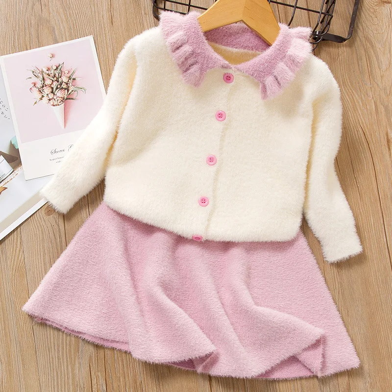 Платье для девочек из 2 предметов осенне-зимнее платье принцессы Повседневная одежда с длинными рукавами для девочек пальто + платье-пачка Детский свитер Трикотажный костюм