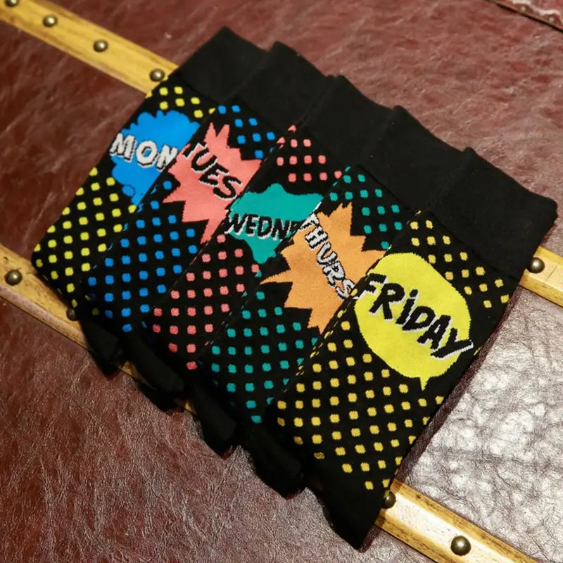 Забавные гольфы до середины икры; контрастный цвет; пэчворк; узор в горошек; забавная неделя; Дата с понедельника по пятницу; принт с буквами.