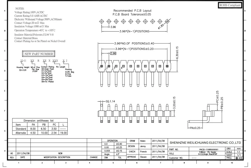 Шаг 3,96 мм PCB Мужской Заголовок 20 контактный заголовок полоса Однорядный правый угол 5.0A 100 в через отверстия доска SIP Sn LCP 1x20 Полюс