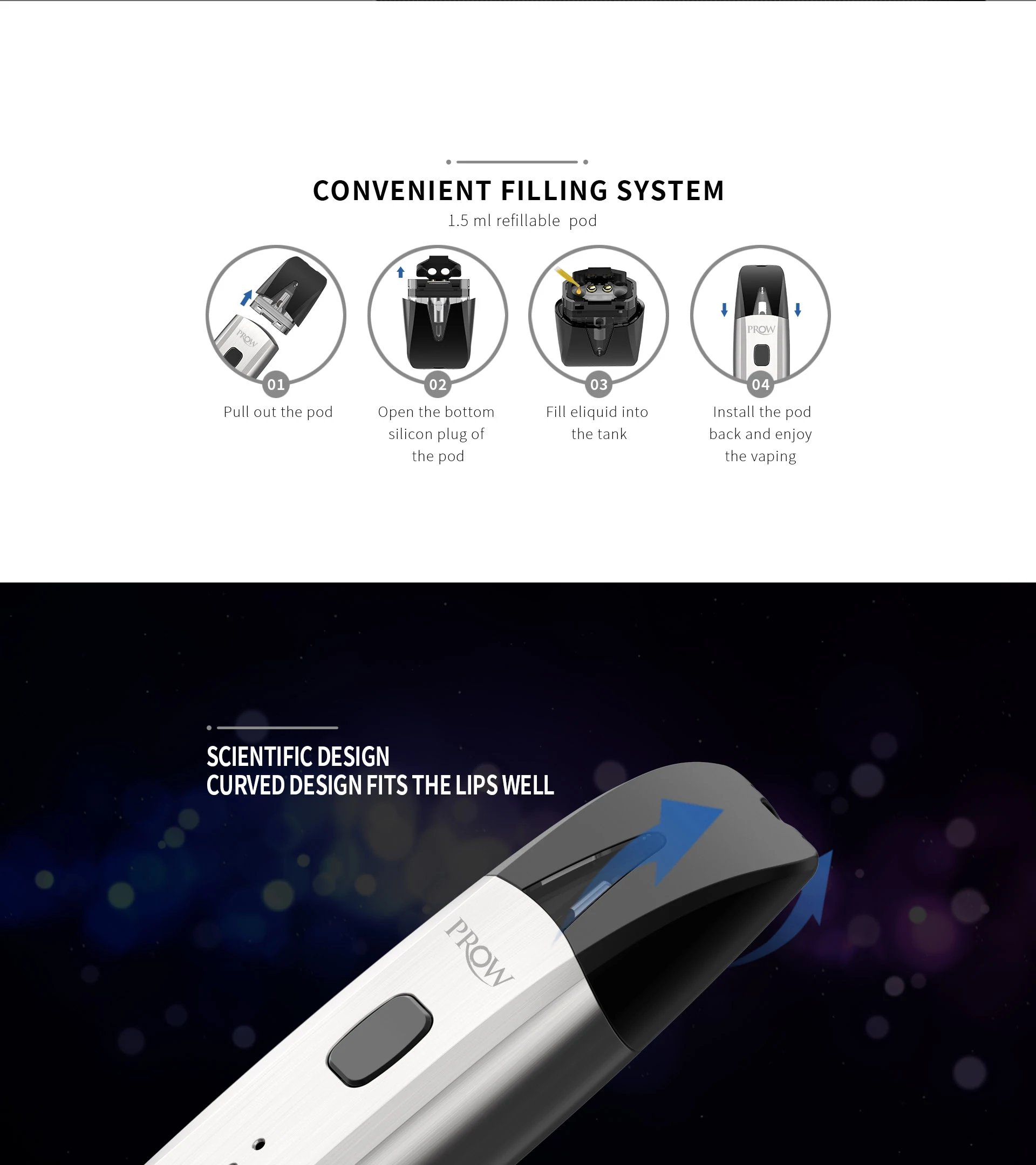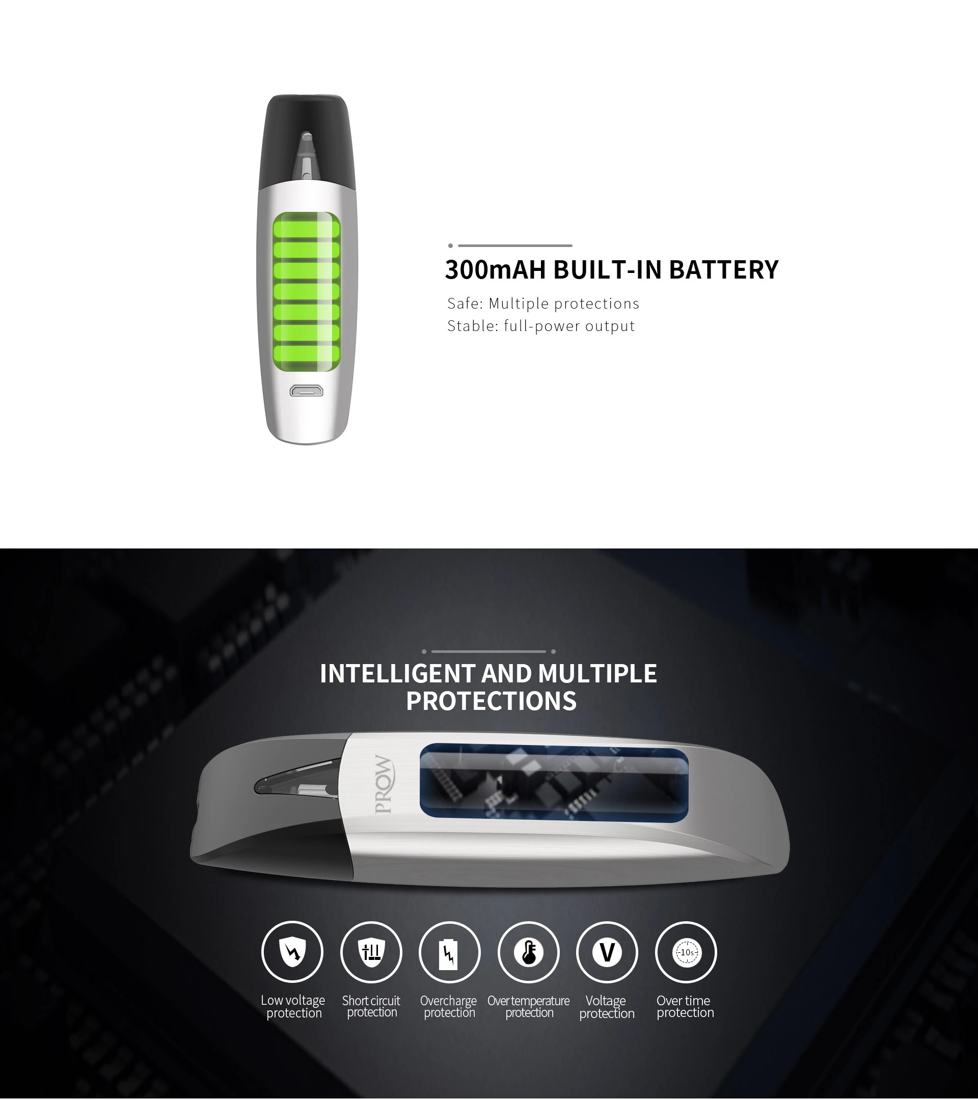 Prow Kit, портативный и изысканный комплект системы pod, поставляется с емкостью 1,5 мл e-juice с нижним наполнением для удобства. И он питается от встроенного аккумулятора емкостью 300 мАч с безопасным, удобным и быстрым usb-портом. В нем также используется Нижняя конструкция воздушного потока для плавного аромата. Кроме того, он принимает систему срабатывания одной кнопкой и научный изогнутый дизайн, чтобы обеспечить Вам комфортный опыт парения. Кроме того, он оснащен 3 индикаторами питания, чтобы показать вам Время работы батареи. И есть несколько защиты для обеспечения вашей безопасности, такие как защита от низкого напряжения, защита от короткого замыкания, защита от перезаряда, защита от перегрева, защита от напряжения и защита со временем. Доступны в 3 цветах: хром, черный, Gunmetal.