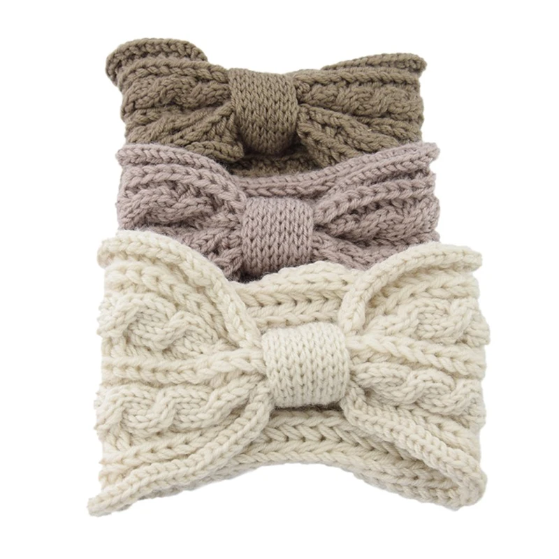 Широкий ободок для волос с бантом; Однотонная зимняя вязаная теплая эластичная повязка на голову