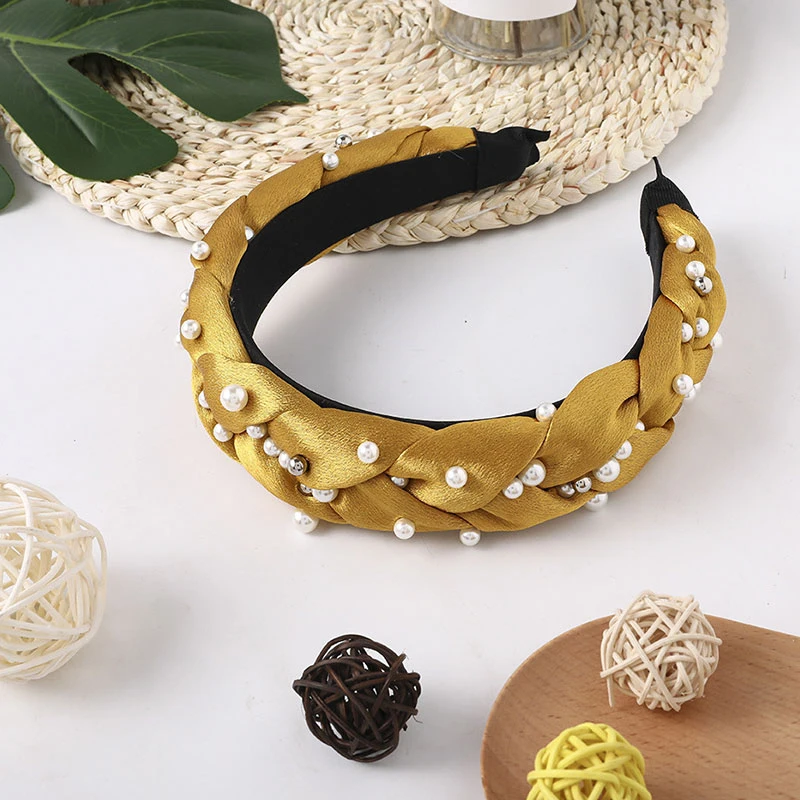 Однотонный атласный Плетеный жемчужный широкий обруч ручной работы с перекрещивающимися узелками