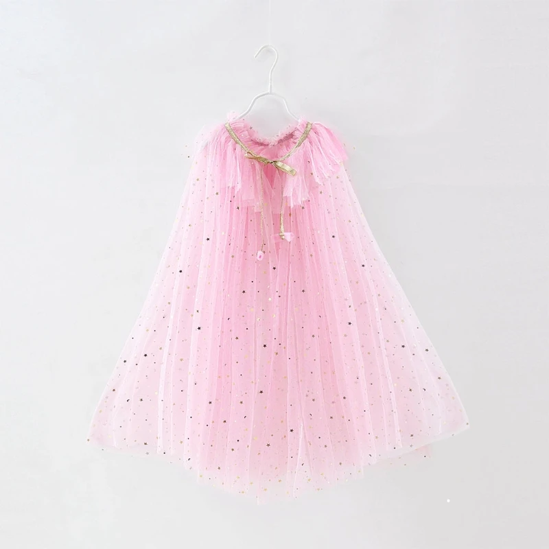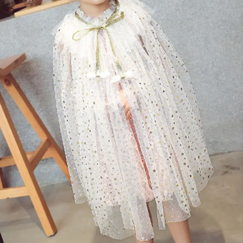 Уникальный дизайн: длинная Плиссированная накидка, многослойный воротник с оборками, полное покрытие с маленькими блестящими звездами и лунами с блестками.