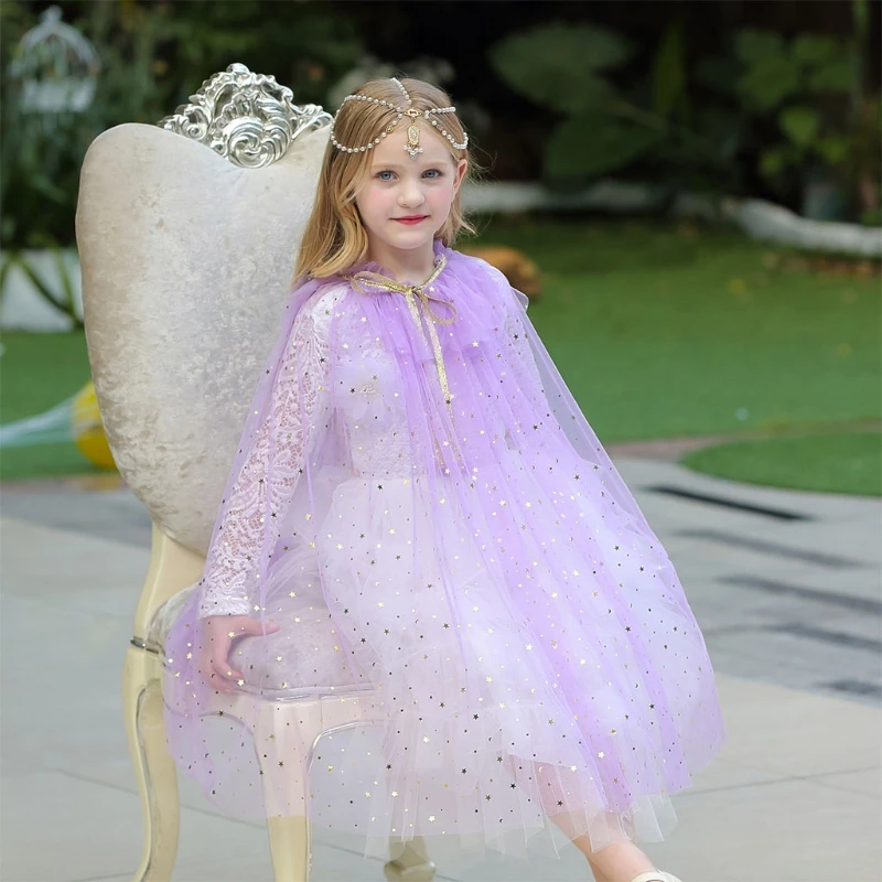Накидка принцессы; Яркий плащ принцессы с блестящими блестками; Нарядное платье принцессы; Вечерние костюмы для костюмированной вечеринки; Одежда для девочек