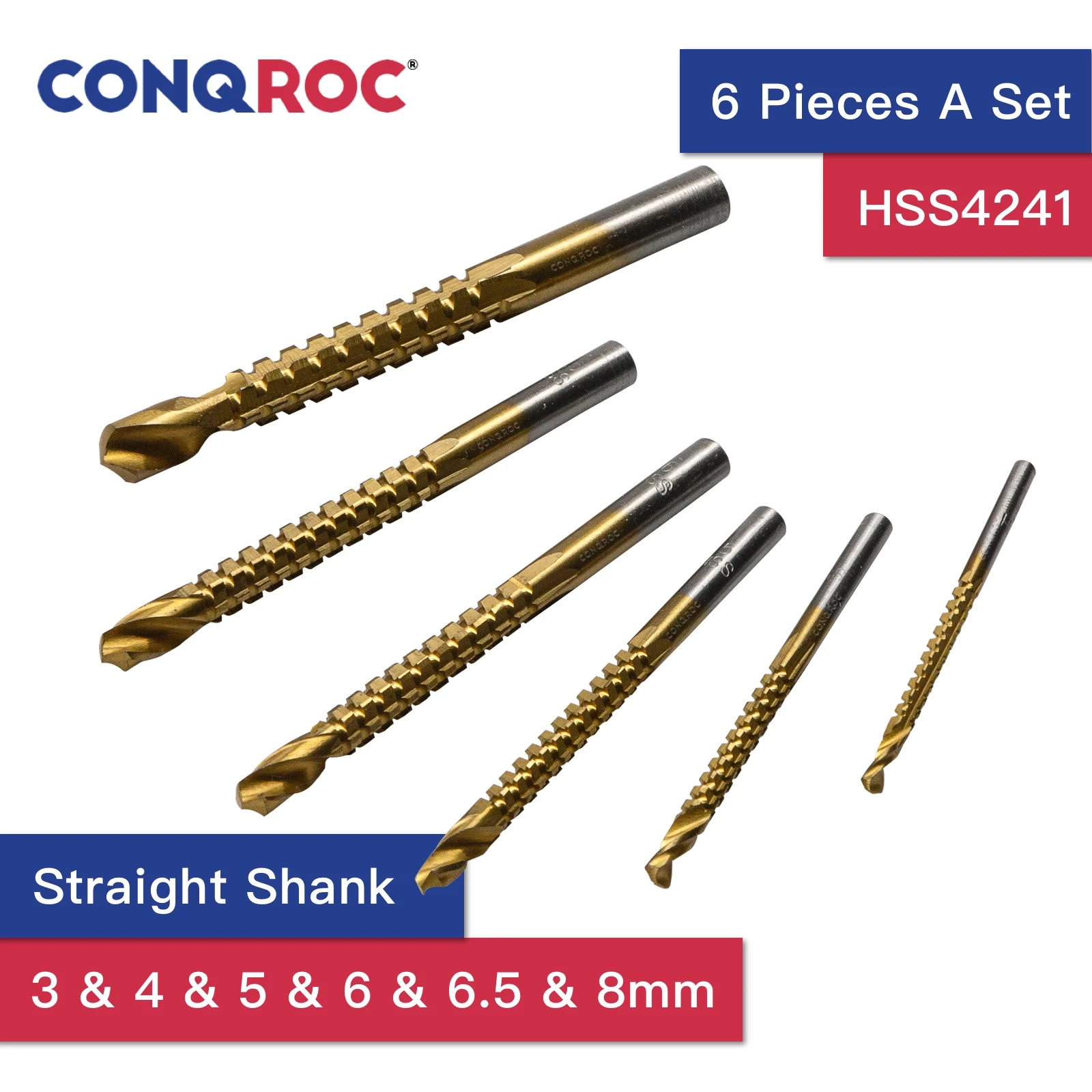 -Диаметр сверления: 3 мм, 4 мм, 5 мм, 6 мм, 6,5 мм, 8 мм -Материал: HSS 4241 -Обработка поверхности: титановое покрытие