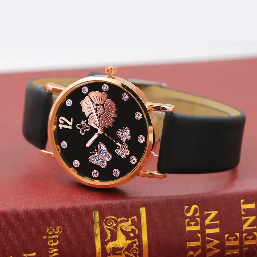 Модные женские повседневные часы с кожаным ремешком, Кварцевые женские наручные часы с черным кристаллом, роскошные женские часы, подарок, Relogio Feminino