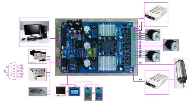 Высокая производительность, экономичность. АвтоматическийПростое перегрузок по току сокращения. Для ручного управления шаговым двигателем, интеллектуальные Шаговые драйверы былиОснащен панелью дисплея HY-LCM-KS и ручкой контроллера HY-DML5-L. Автоматически определяет и компьютер, и контроллер HY-DML5-L, функции компьютера и контроллера можно переключать разумно друг для друга без каких-либо помех. Панель дисплея HY-LCM-KS может в режиме реального времени отслеживать бегущий путь g-кода на компьютере или ввода контроллером ручки, а затем полностью и одновременно отображать изменение каждого оси '(X, Y, Z axis и т. д.) значения на экране. И интеллектуальная версия, и профессиональная версия совместимы сMach2, Mach3 (программное обеспечение по умолчанию), LinuxCNC (EMC2), KCAM4 CNC программное обеспечениеИ т. д. Кроме того, профессиональная версия также может автоматически отслеживать путь бега G-Code от программного обеспечения CNC (e.g. Mach3, EMC2, KCAM4 и т. д.) компьютера и записи g-кода в чип памяти; Легко повторно запускать g-код для управления шаговыми двигателями без компьютера. Автоматическая Отделка инструмента-настройки на оси X, Y, Z через панель управления, без поддержки компьютера. Совместим со всеми моторами с номинальным током 0.5A-3.5A (Пиковый), 8 типов регулируемого выходного тока можно установить на плате водителя. 1, 2, 8, 16 регулируемое микроступенчатое управление, двигатели работают более точно и плавно. Защита от перегрузки, перегрузки по току, перенапряжения, перегрева во избежание повреждения компьютера и устройств. Полностью закрытая Оптическая изоляция и биполярный измельчитель постоянного тока для обеспечения работы моторов при низком уровне шума и вибрации, а также для предотвращения ползучести моторов на низкой скорости. С одним0-10 в PWM выходной сигналПорт для регулировки скорости и один релейный порт управления. 5 типов управления входом в ручном интерфейсе управления, чтобы установитьЛимит, Estop, настройка середины точки, настройка резака/Настройка инструментаИ т. д.