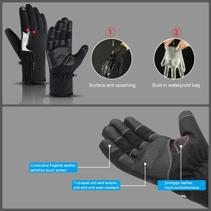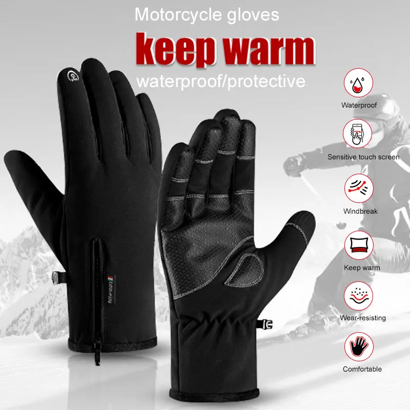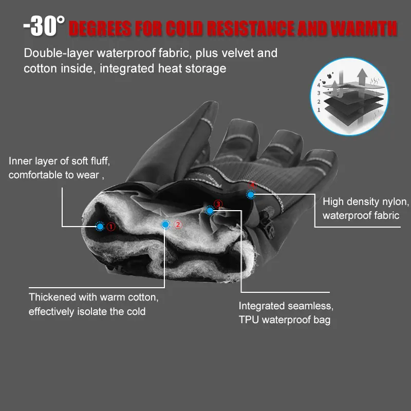 Черные Водонепроницаемые перчатки для езды на мотоцикле с сенсорным экраном, унисекс-30 ℃, теплые защитные перчатки для катания на лыжах, занятий спортом на открытом воздухе