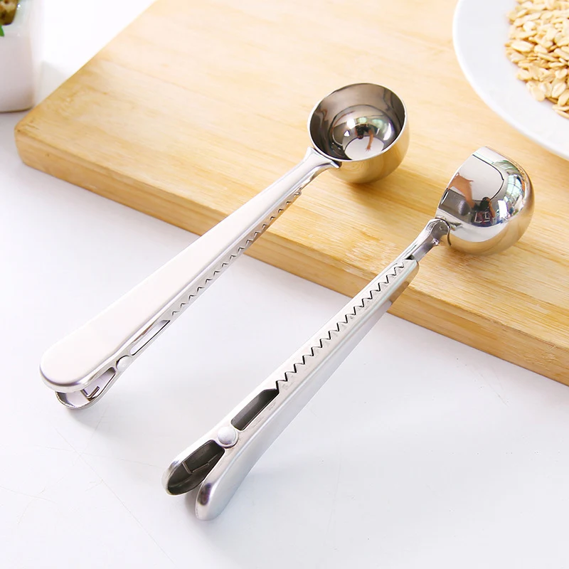 Многофункциональные кухонные принадлежности, совок для кофе с зажимом из нержавеющей стали, чайный кофе, мерный стакан, ложка для кофе