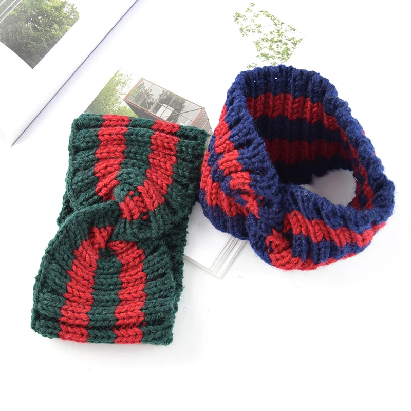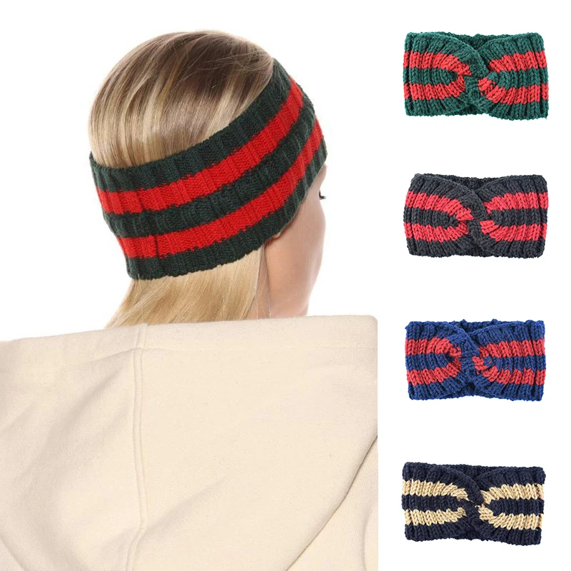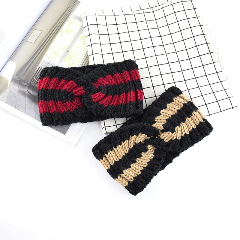 Полосатая вязаная повязка на голову с перекрещивающимися полосками, зимняя вязаная повязка на голову, широкий ободок для волос