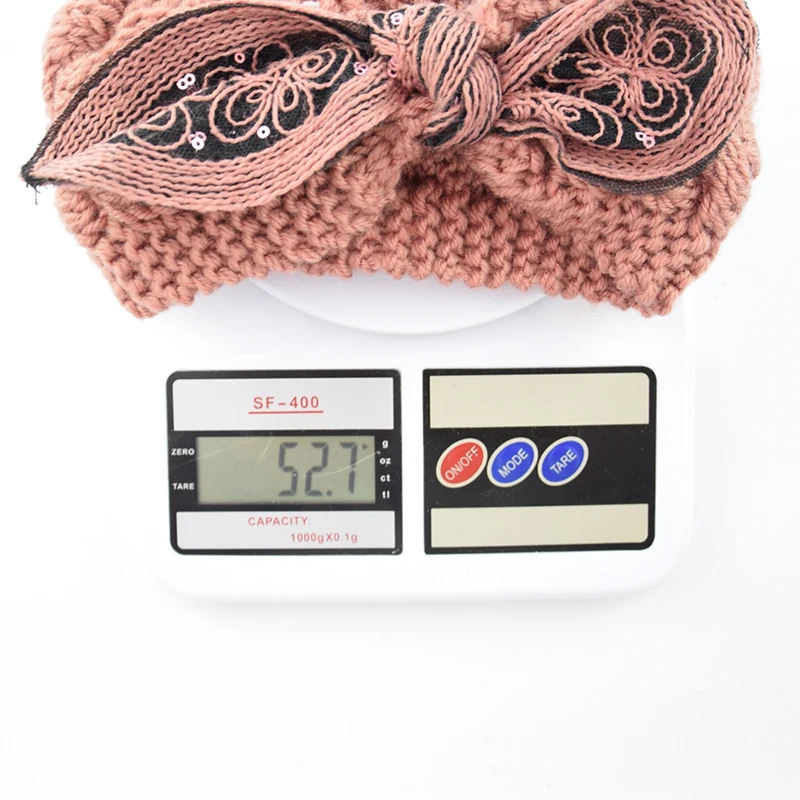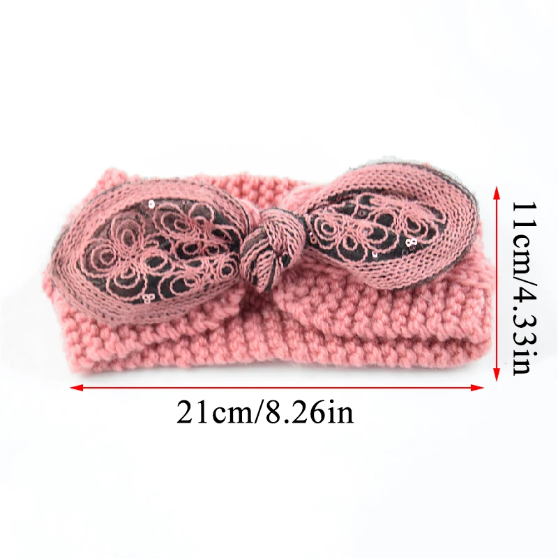 Зима большой бант цветочный твист трикотажная повязка уха теплые, вязаные крючком упругая резинка для волос