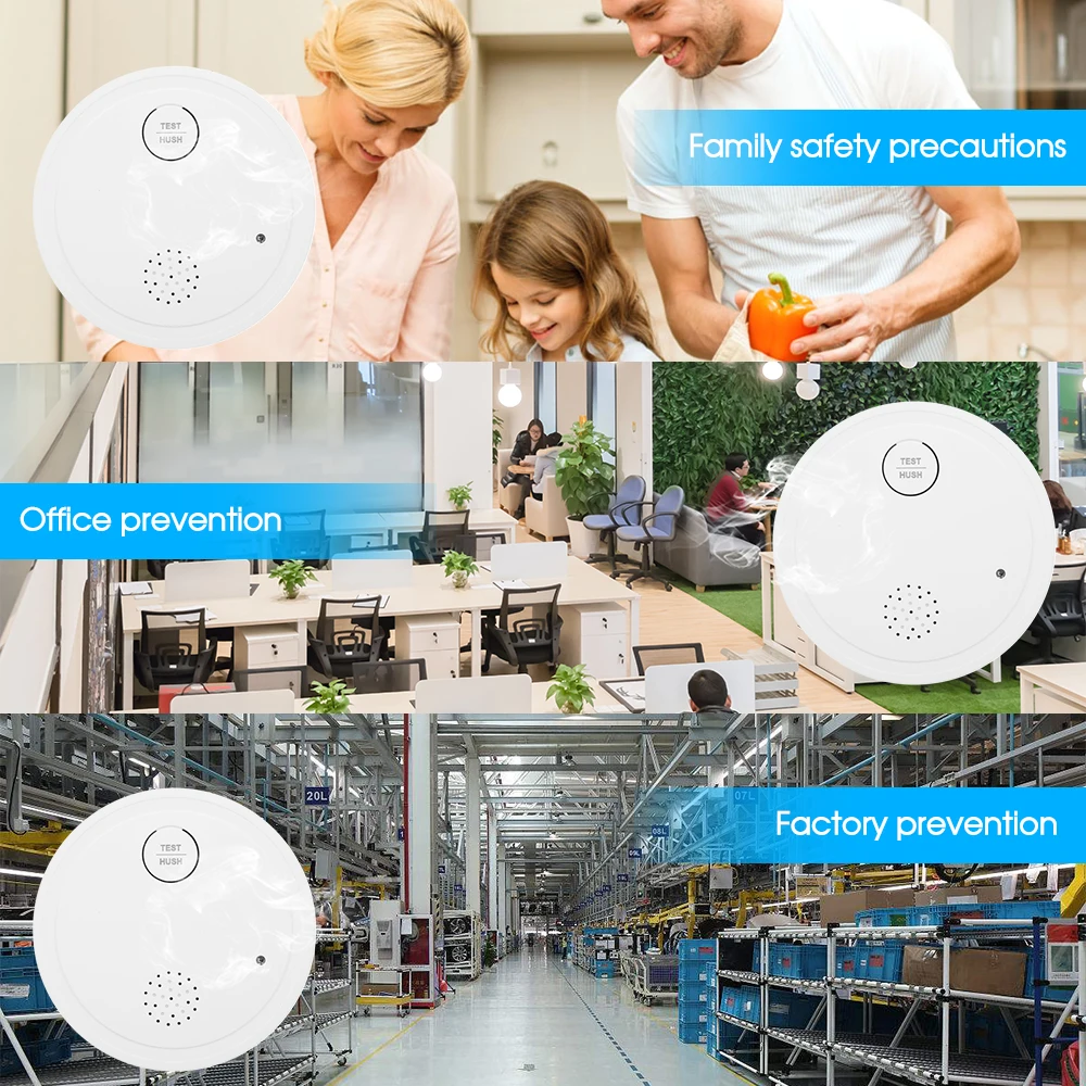 Этот продукт представляет собой интеллектуальную дымовую сигнализацию с сигнальным индикатором. Как только дым достигнет определенного уровня опасности, будет срабатывать сигнализация, и сигнал тревоги будет отправлен на мобильный телефон. Используя приложение tuyasmart, вы можете овладевать информацией о безопасности в вашем доме.