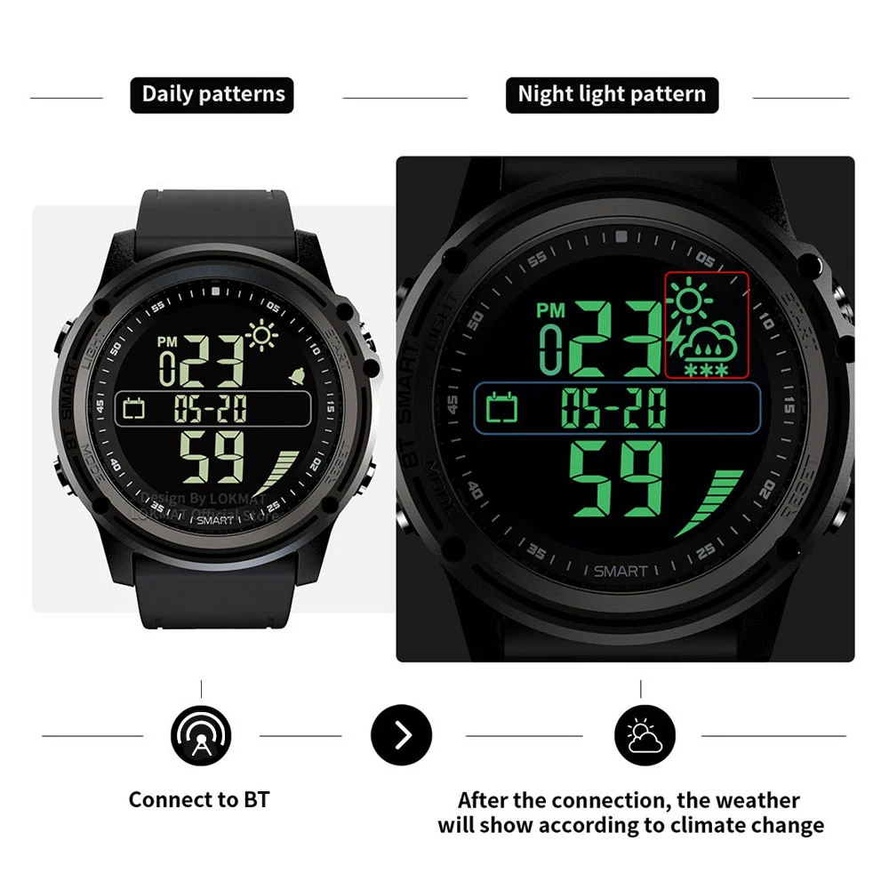 С 1,25 дюймовым FSTN видимым солнечным экраном, LOKMAT MK07 имеет длительное время работы в режиме ожидания 33 месяцев и практическую функцию удаленной камеры, шагомера, водонепроницаемости IP68, погоды в реальном времени, информации, И т. Д. Эти современные смарт-часы-идеальный компаньон в вашей повседневной жизни.