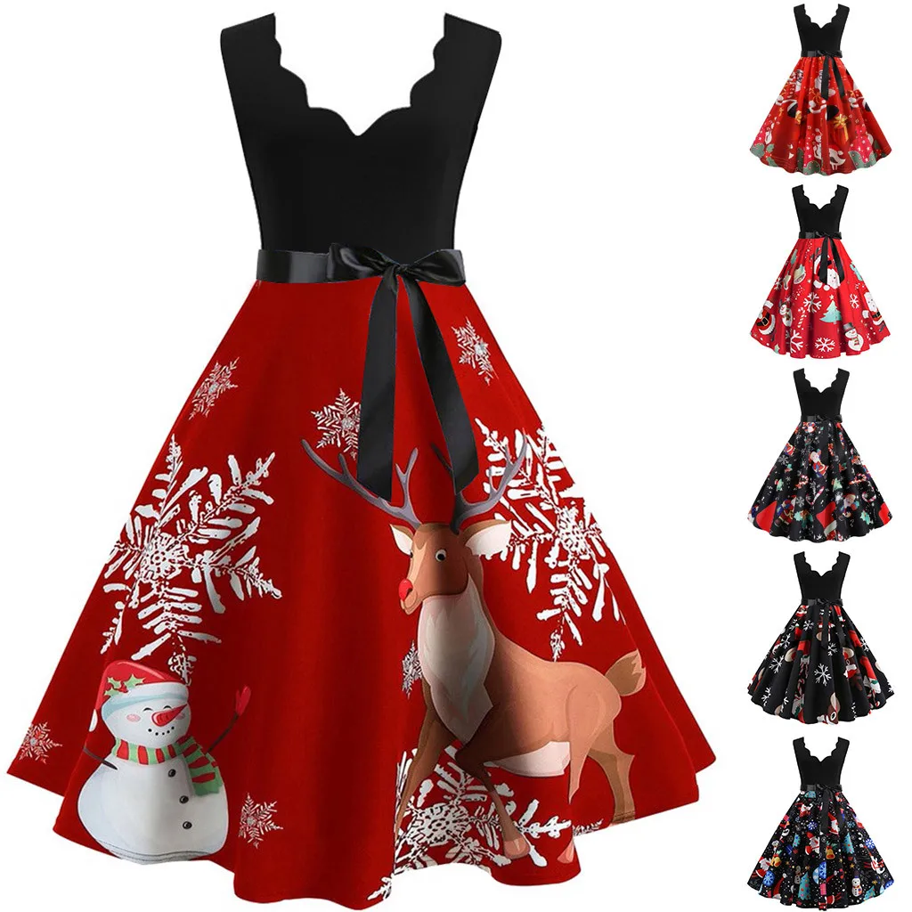 Модные женские повседневные Рождественские Мини-вечерние платья с v-образным вырезом без рукавов