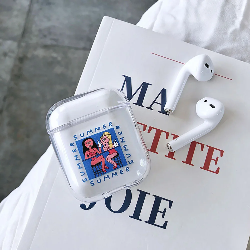 Мультяшный прозрачный беспроводной Bluetooth чехол для наушников Защитный чехол для Airpods