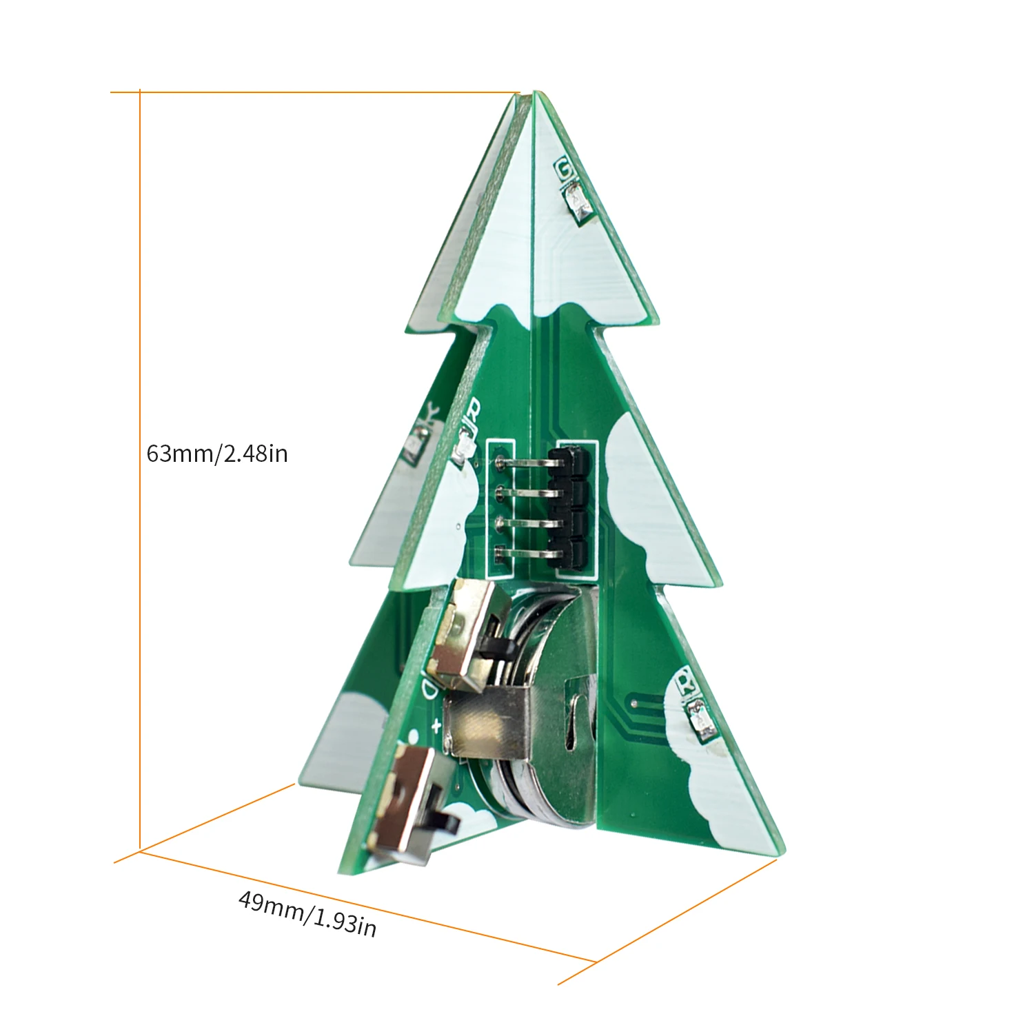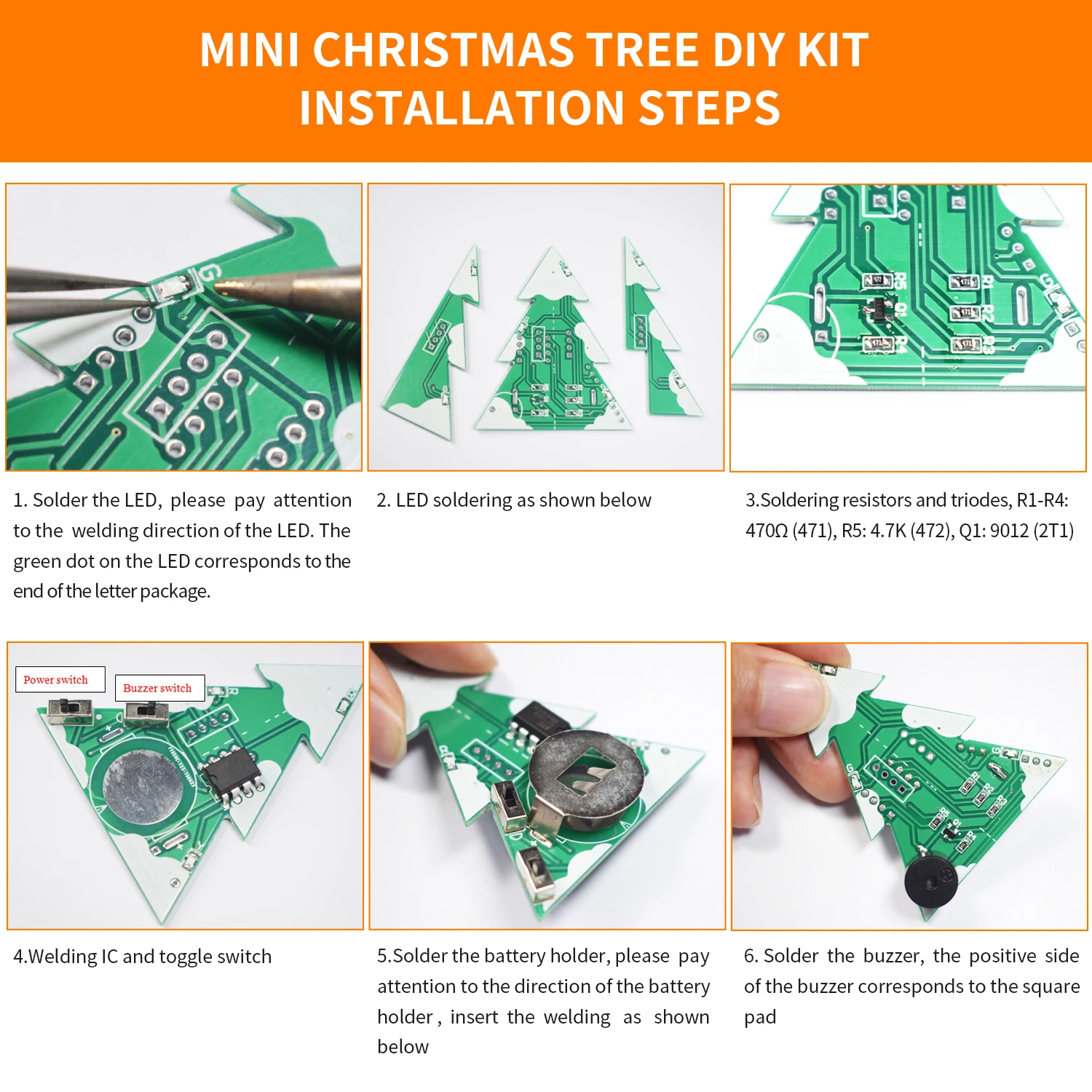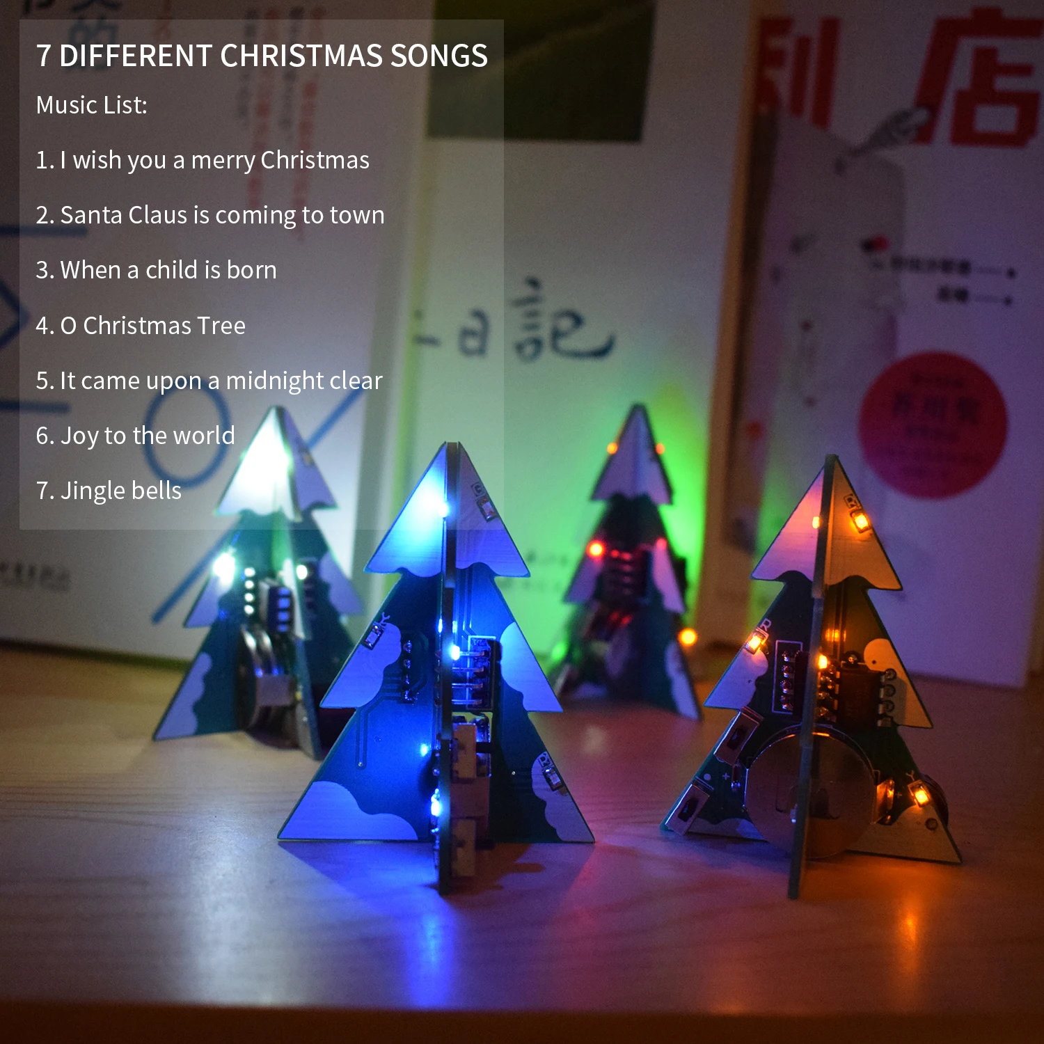 Это простой мини-набор для рукоделия с рождественской елкой. Три различных PCBs объединены в 3D стерео модель рождественской елки. -Различные разных цветов может быть выбран. Он может питаться от аккумулятора кнопки и может быть свободен от источника питания. Встроенный 7 светодиодный градиентный режим плюс 7 различных рождественских мелодий.