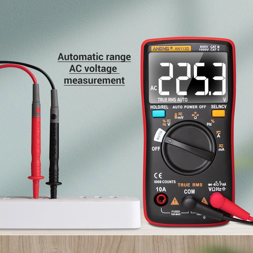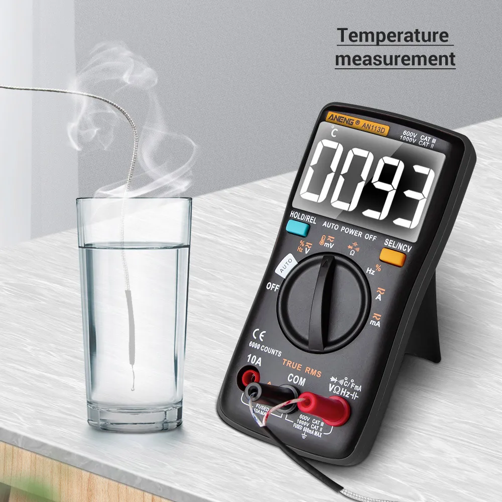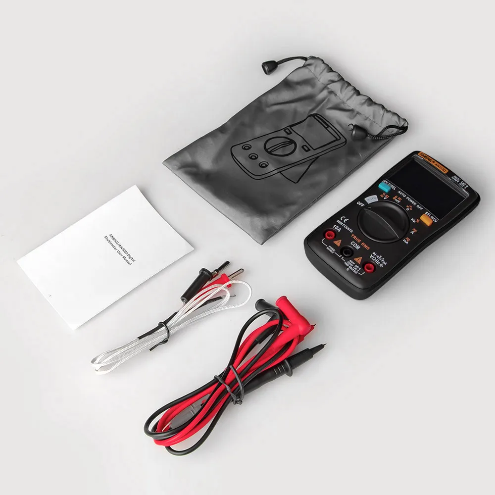 Многофункциональный мультиметр с ЖК-дисплеем с подсветкой, может использоваться для измерения напряжения постоянного/переменного тока, переменного/постоянного тока, сопротивления, диодного теста/непрерывности, NCV, частоты/рабочего цикла, емкости, температуры.