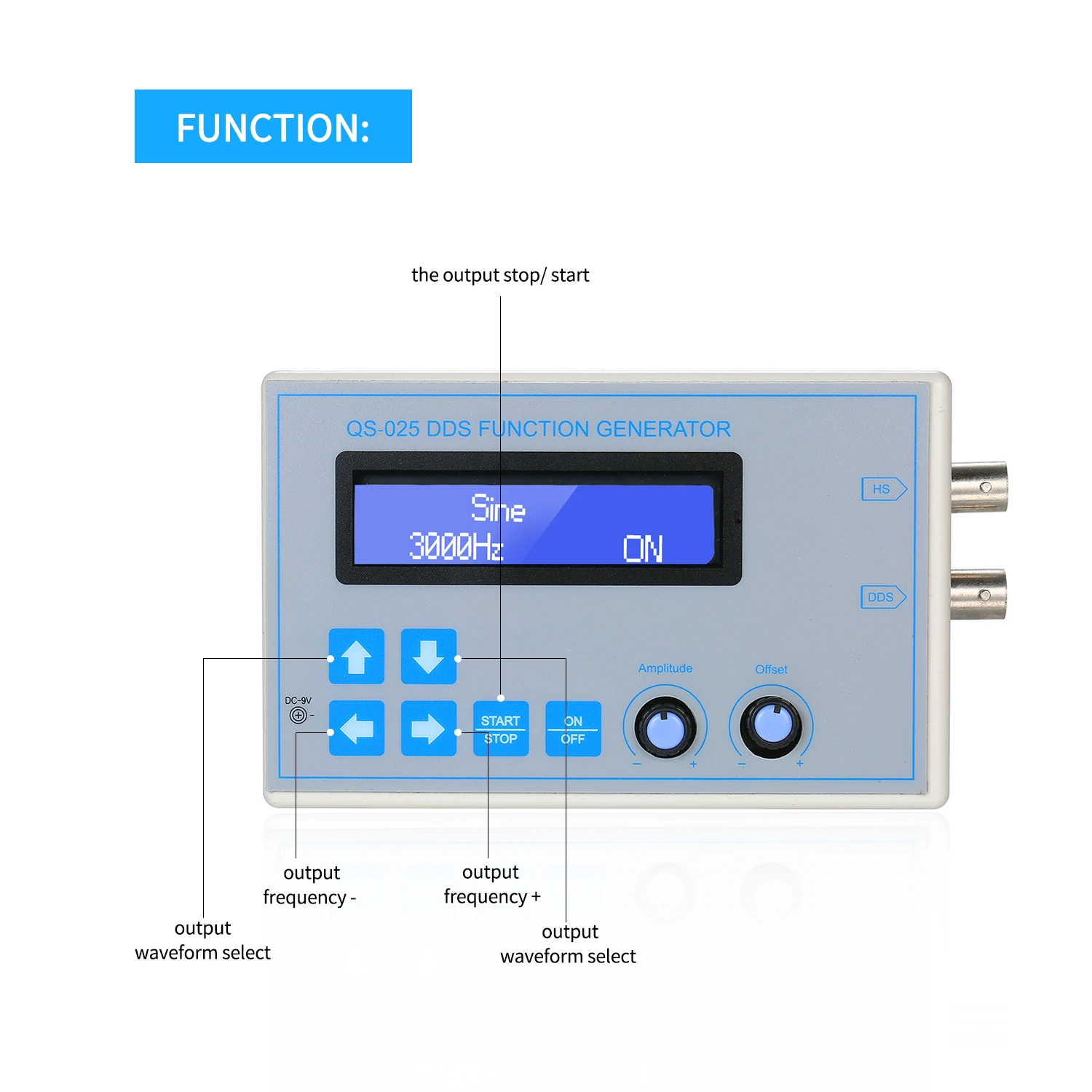 Этот функциональный генератор сигналов может проверить множество видов волновых форм, таких как: Синусоидальная волна, квадратная волна, Пилообразная, обратная Пилообразная, треугольная волна, волна ЭКГ и шум волны.